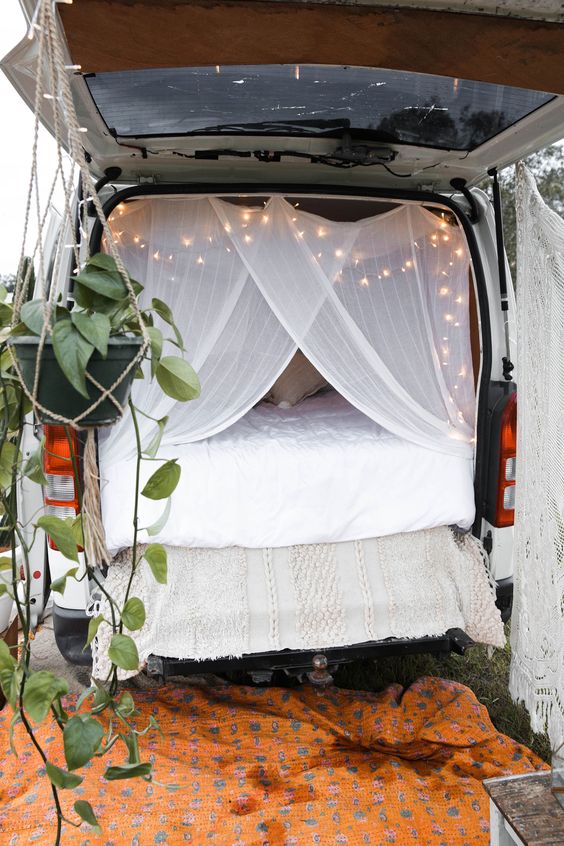 Декора в палатката или кемпъра ви е естествено вдъхновен от природата, това значи че имате голям диапазон цветове – кафяво, зелено, жълто, синьо… Придържайте се към тях при избора на завивки и спално бельо, покривки и всякакви декоративни елементи. Любимият ни стил е бохемски шик. Това е стила на разнородните комбинации, изберете различни флорални десени и ги комбинирайте със смели ярки цветове като се придържате към жива цветова схема. Комбинирайте модерни и винтидж елементи, целта ви е да постигнете радостно излъчване, за това експериментирайте с десени, цветове и текстури.
