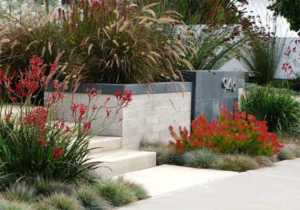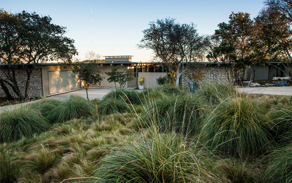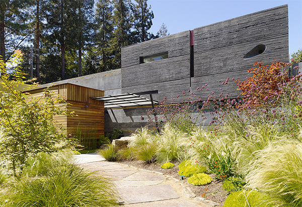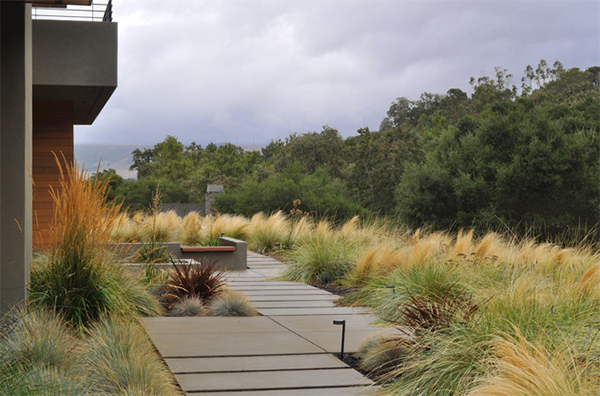 Модерен дом с модерно озеленяване. Използвани са различни видове треви- Мексикански коило, Calamagrostis и Festuca maireii.