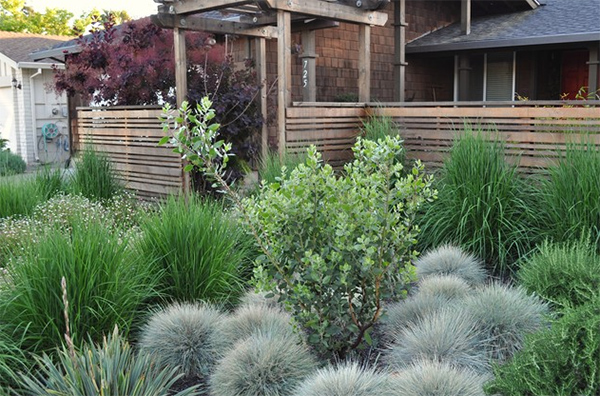 Освен очарователния дизайн на оградата, прави впечатление микса от различни треви и растения.