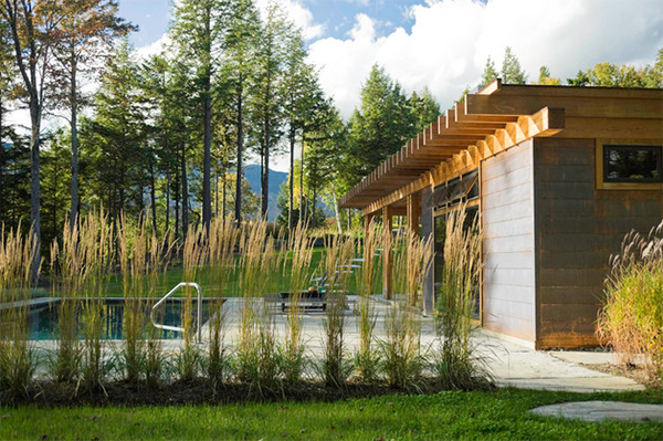Пухкави треви пред къщата придават забавна нотка на екстериора, а високите треви осигуряват уединение, но не и през зимата, когато се режат.
