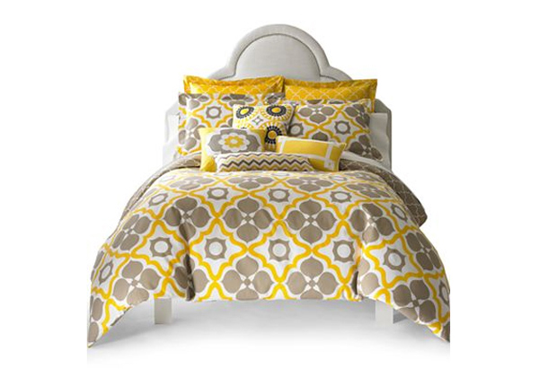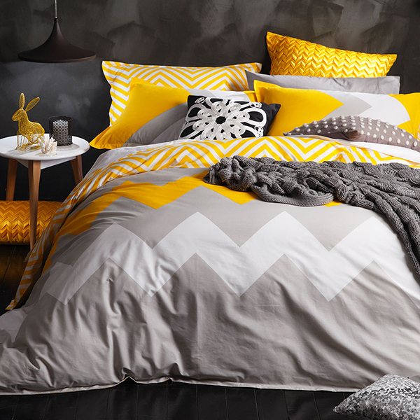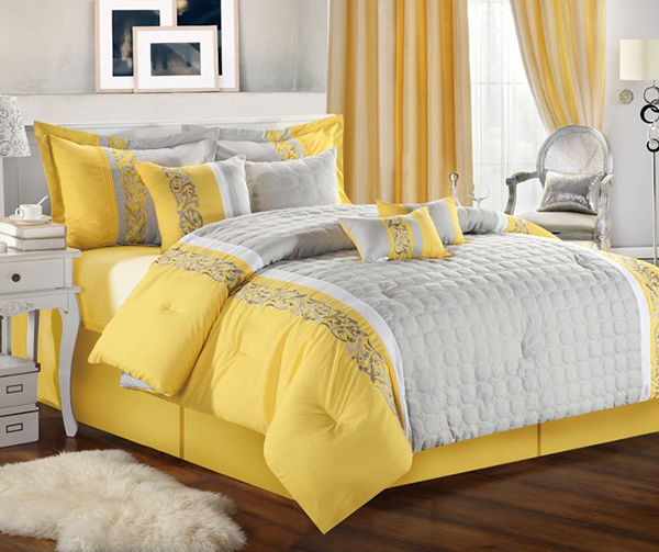 Изчистен и стилен комплект в жълто и сиво. Ще направи всяка спалня много по-елегантна!