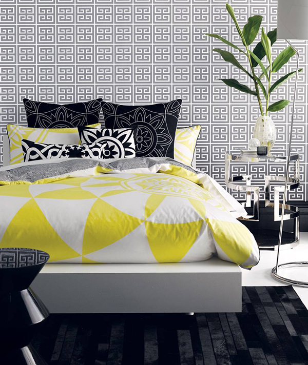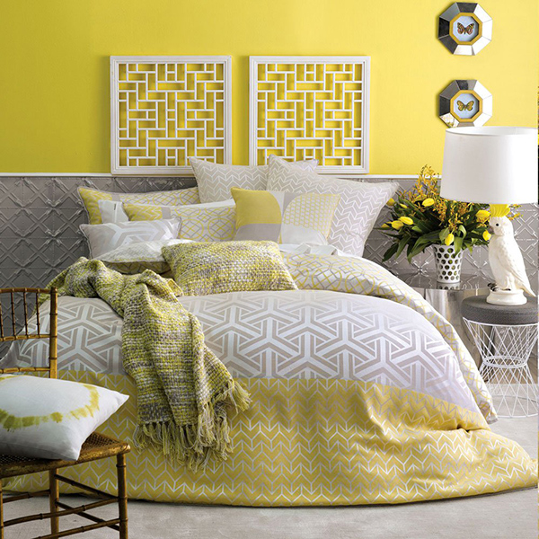 Ето един модерен подход към геометричните шарки и цветя. А комбинацията от сиво и жълто изглежда много свежо!
