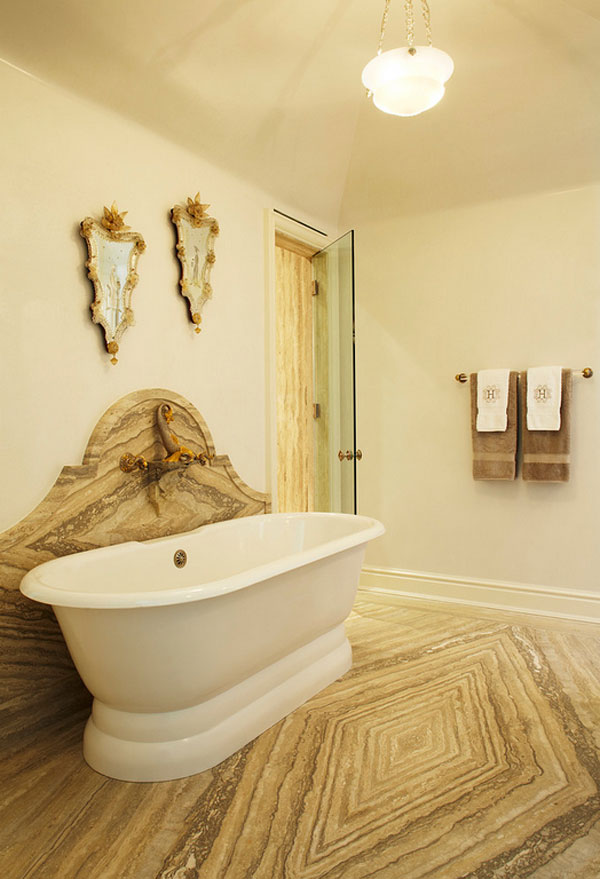 Травертинът е камък, който има светъл цвят и внася свежест и уют в банята.