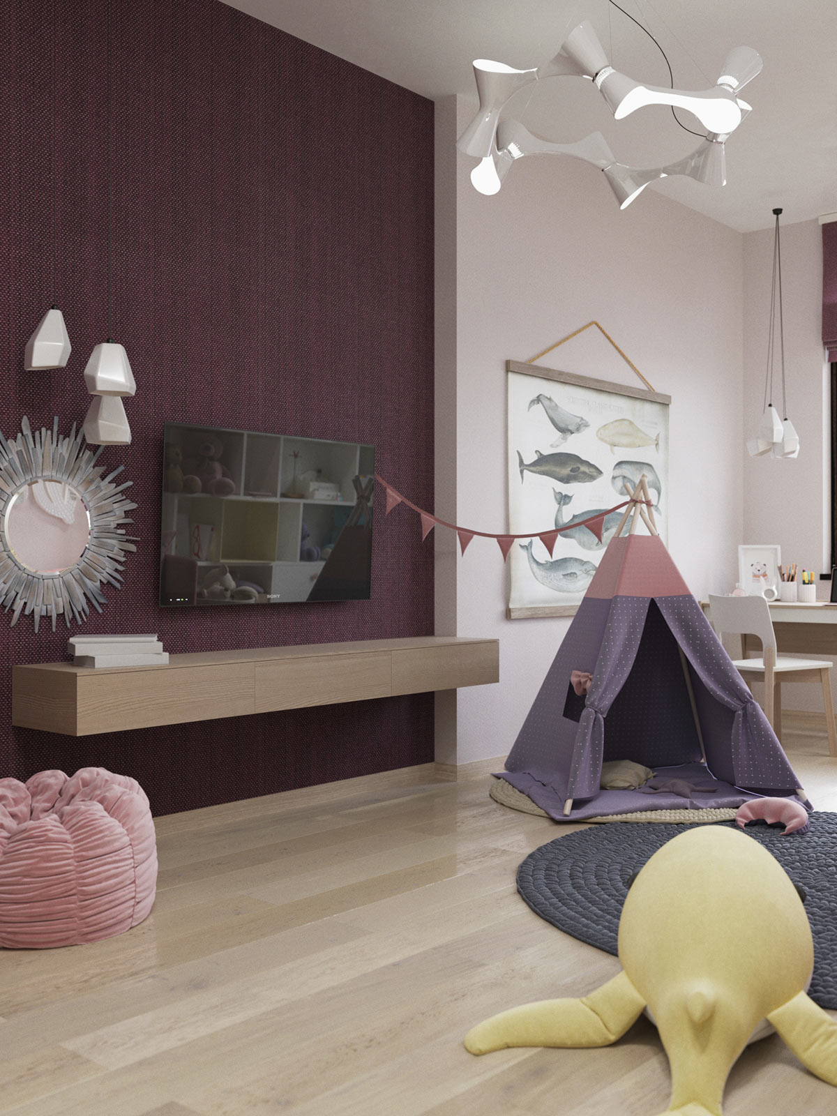 Когато една млада двойка с усет към стила иска да се установи и да създаде семейство, може да бъде предизвикателство да се съобрази с нуждите на децата. В трите апартамента, включени в тази публикация, дизайнерите са намерили начин да направят точно това. Едно игриво детско помещение не трябва да бъде жертва на поток от играчки. Избирането, организирането и поддържането не се лека задача. Използването на игриви, цветни и интерактивни елементи, ще направят пространството забавно за децата, а и привлекателно за възрастните.