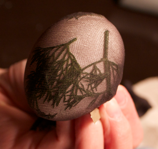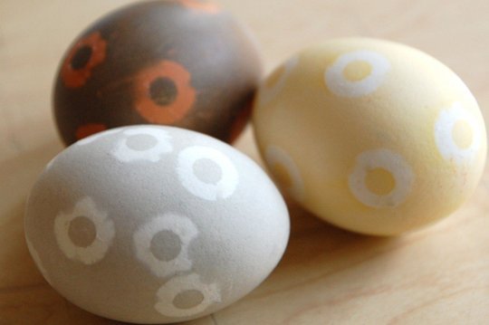 5. Кора от лук: Увийте суровите яйца в кори от лук и бяла тензухена кърпа (или чорапогащник), и след това ги сварете в продължение на 20 минути. Маслата от лука ще се отбележат върху яйцата.