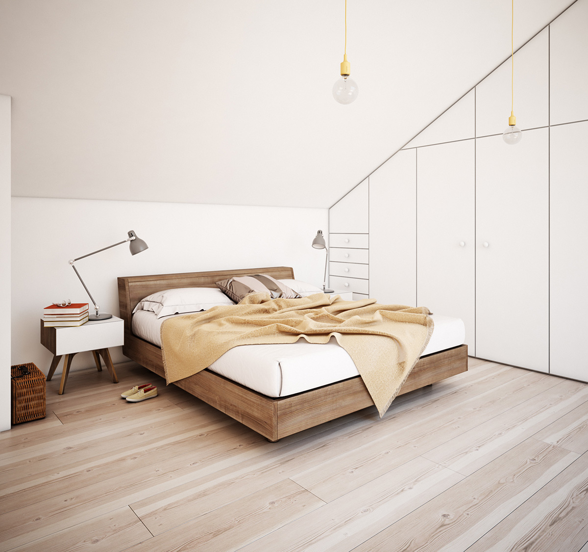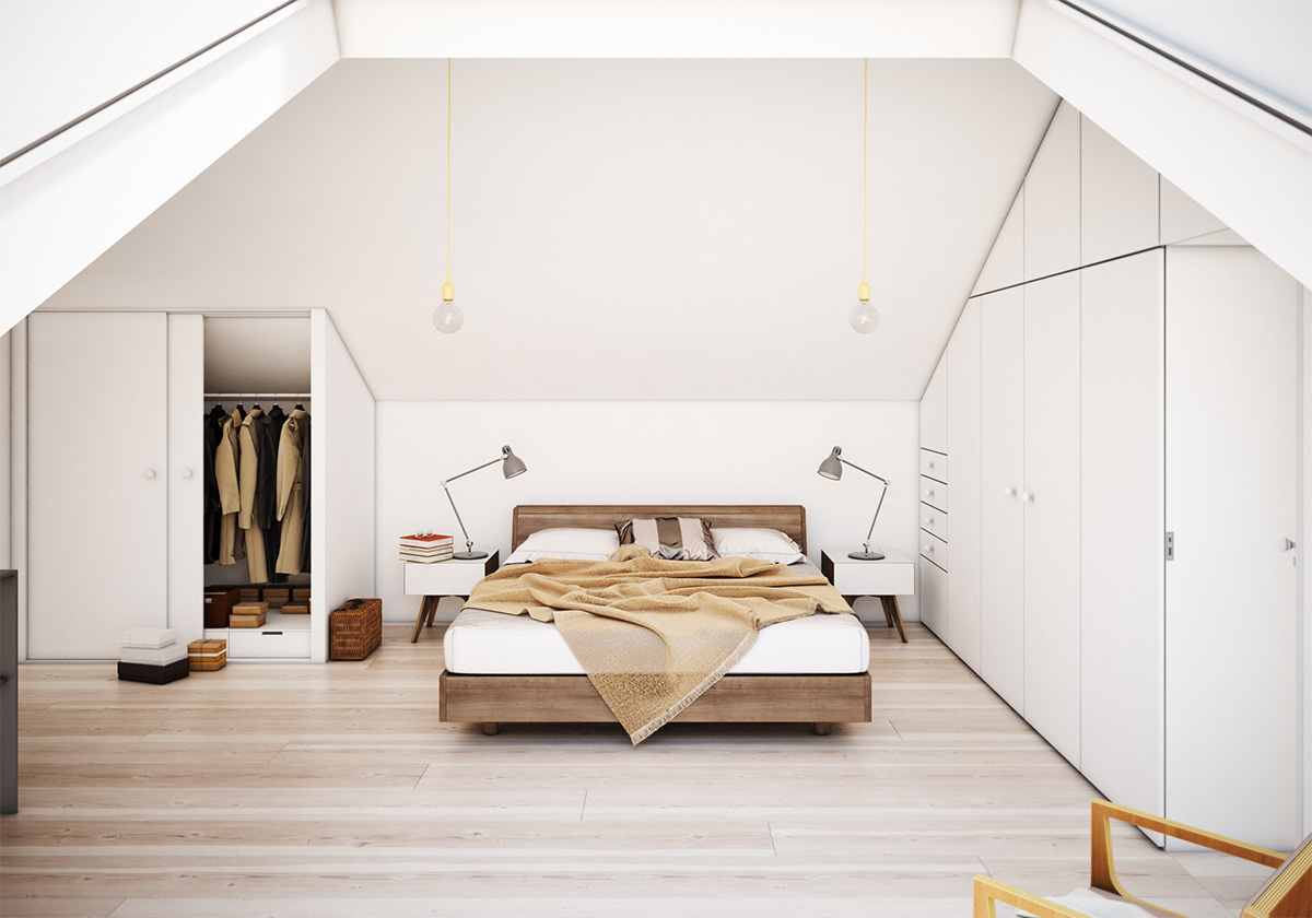 И едно различно предложение за светла, просторна, с висок фронтон спалня, където основен мотив е бялото, съчетано с вашата креативност и вдъхновение за нов стил.