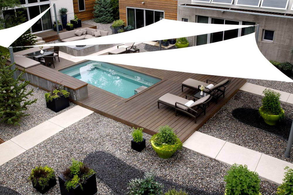 Ние знаем, че това, което ни тегли да прекарваме повече време навън през топлите месеци, е очевидно слънцето, но да сме изложени през целия ден на слънцето, не е добра идея. Не се чувствайте ограничени да използвате просто само един чадър за двора. Има толкова много по-стилни опции за осигуряването на сянка: закупуване (или изграждане) на пергола за сядане и хранене или висящ голям чадър.