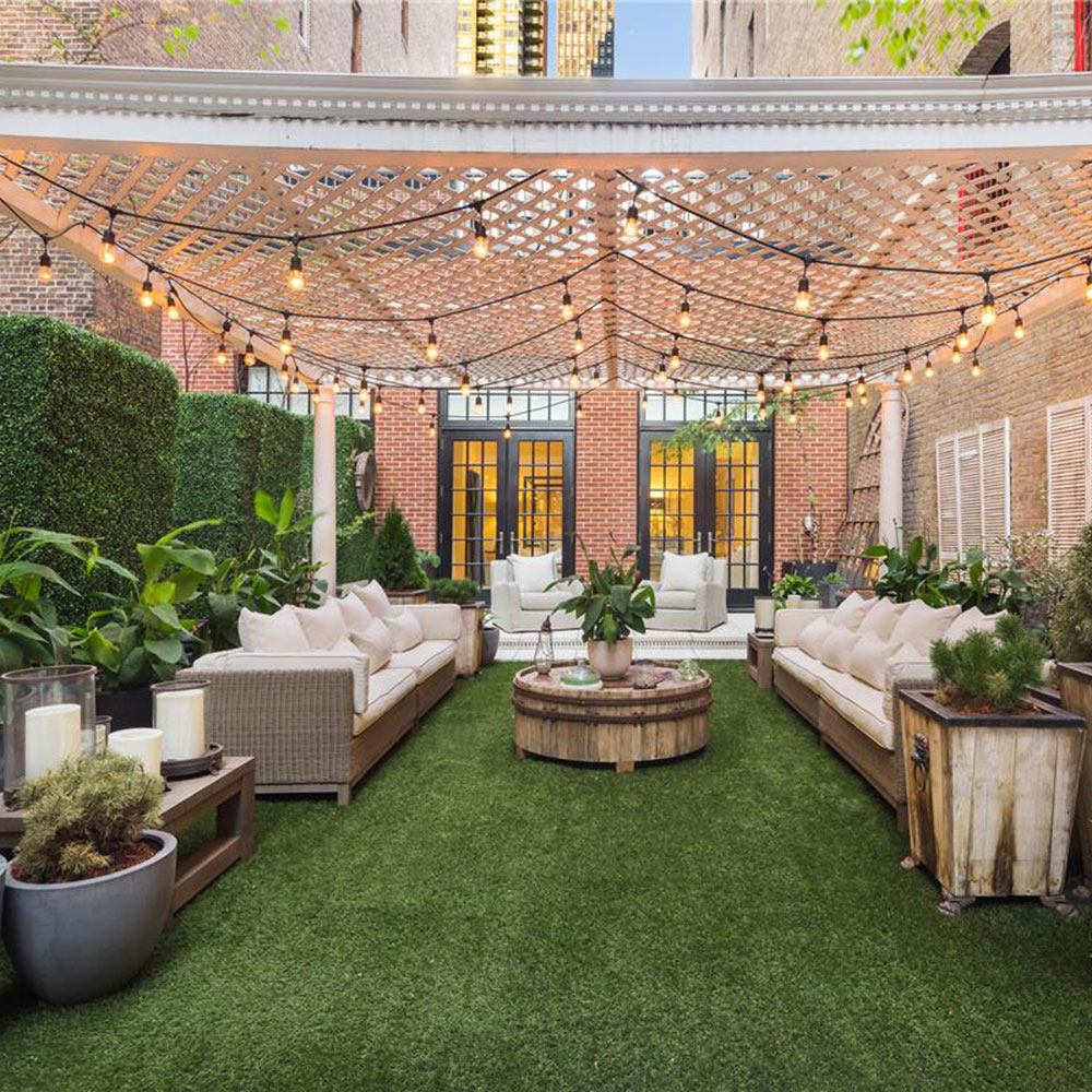 Видяхме снимките и това място е невероятно. Не ни се доверявайте, разгледайте го и вие. Това е една внушителна гледка, не мислите ли? Всъщност няма как да е от друго място освен “голямата ябълка” и това пространство е само част от огромната външна градина с размер над 270кв/м, с която разполага този двуетажен имот. Ще се затрудните да откриете подобно място в целия Ню Йорк. Окачените гирлянди с лампи, приличат на украса за сватба от каталог.