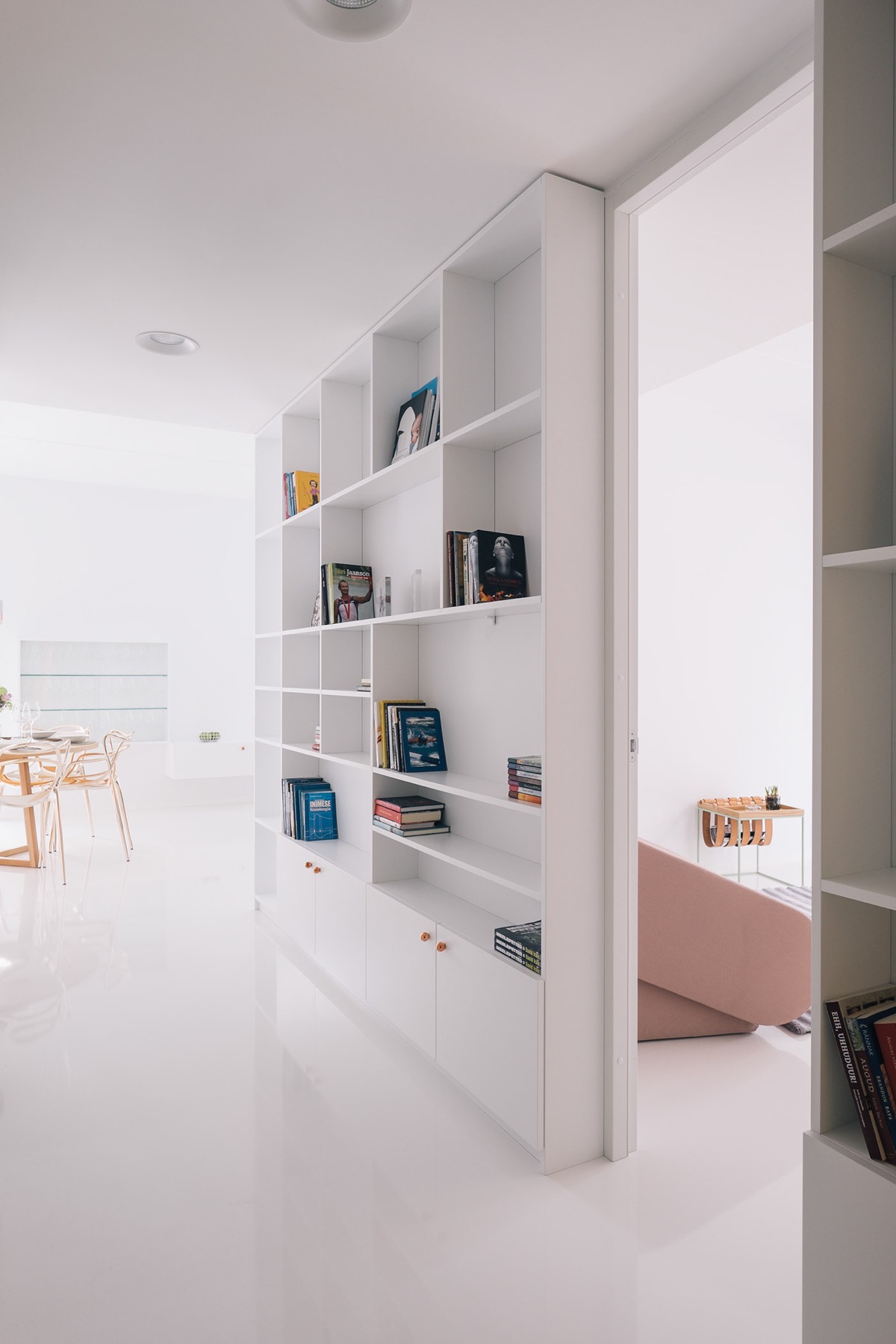 Целият апартамент е решен в бяло, което е прекрасна сцена за всички