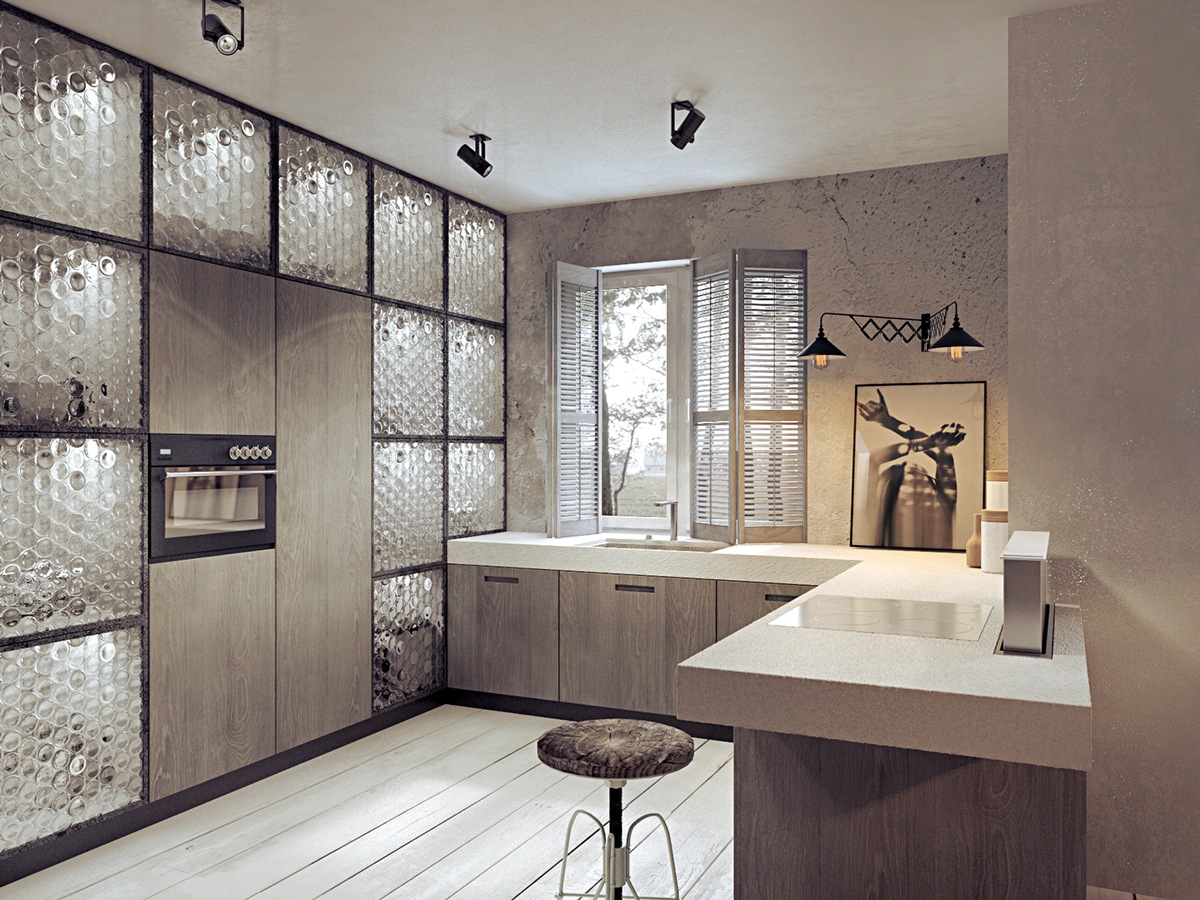 Бетонът изглежда супер в тавански помещения, но не е нужно да имате артистично място с изглед към центъра на града, за да изглежда невероятно. Това пространство е супер стилно и използва коренно различни стилови елементи, за да се създаде единна визия. Изложения бетон в хола определено дава на дома малко предимство, докато интериорните стъклени стени разделят спалнята от останалата част от къщата. Стъклени блокове в кухнята позволяват навлизането на много естествена светлина, без да се прави компромис с неприкосновеността на личния живот.