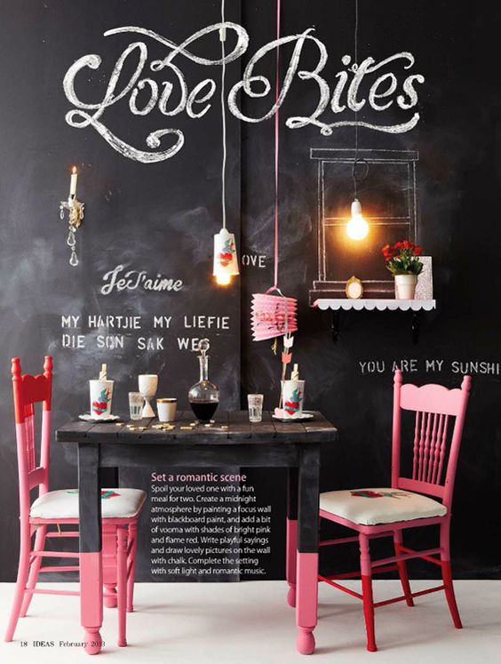 С приятелите ми обичаме да си оставяме съобщения едни на други. Точно като децата – предпочитаме да изразяваме своите емоции мечти, мисли и настроения чрез рисунките. Тези дни сме обсебени от идеята за инсталиране на черна дъска или стена в интериора.