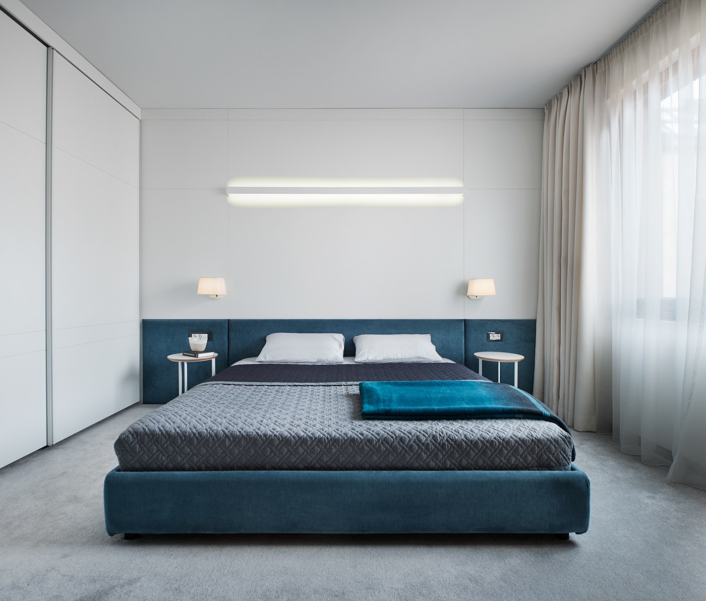 Дървото се появява отново в спалнята, но само като акцент. Въпреки това, в края на стаята са използвани по-меки материали – за насърчаване на усещането за мир и спокойствие.