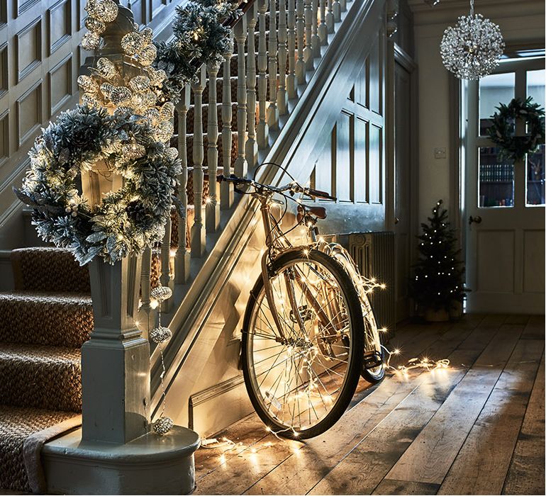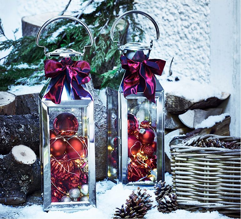 Друга шантава идея, вдъхновена от традиционните коледни фенери, е да напълните фенерите с коледни топки за елха в любимия си цвят. Можете да добавите малко коледни лампички и да ги светнете, когато се стъмни. Коледните лампички са един от най-ефектните начини да декорирате дома си. Можете да ги увиете около почти всичко и да създадете загадъчна и романтична празнична обстановка. Сложете ги покрай огледало или обекти с метални елементи, за да уловят и усилят отблясъците им.
