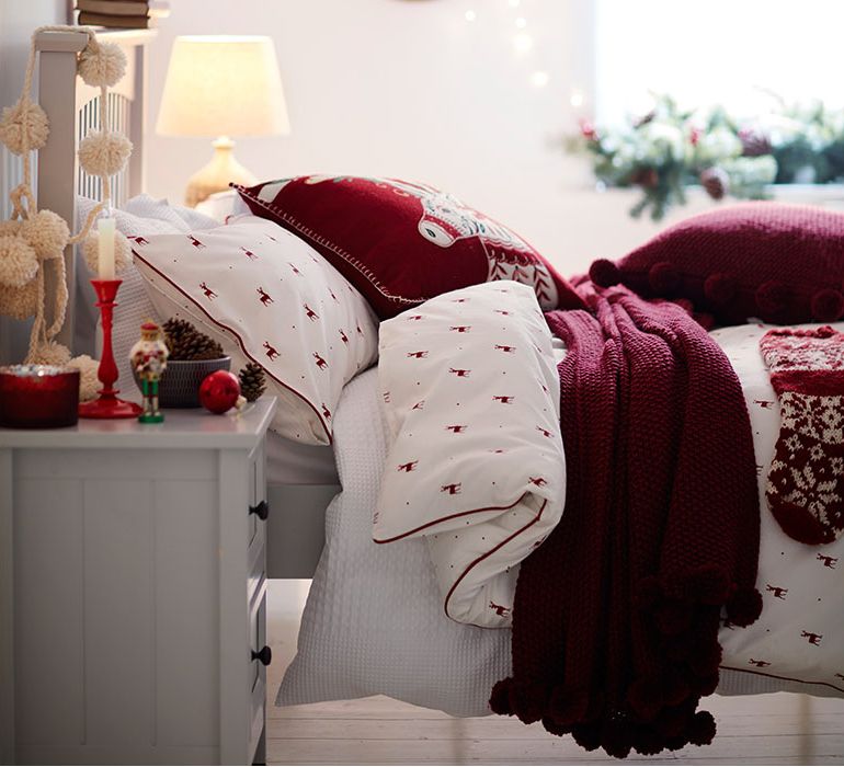 Понеже прекарваме много време в спалнята е добре да обърнем внимание и на нея. Сменете спалното бельо с нещо в празнични щампи и коледни цветове. Добавете един- два цветни акцента във всекидневната, червено декоративно одеяло на дивана и няколко празнични възглавнички. Добавете няколко декоративни снежни топки тук и там, сложете коледни свещи в аранжировка от цветя на масата.