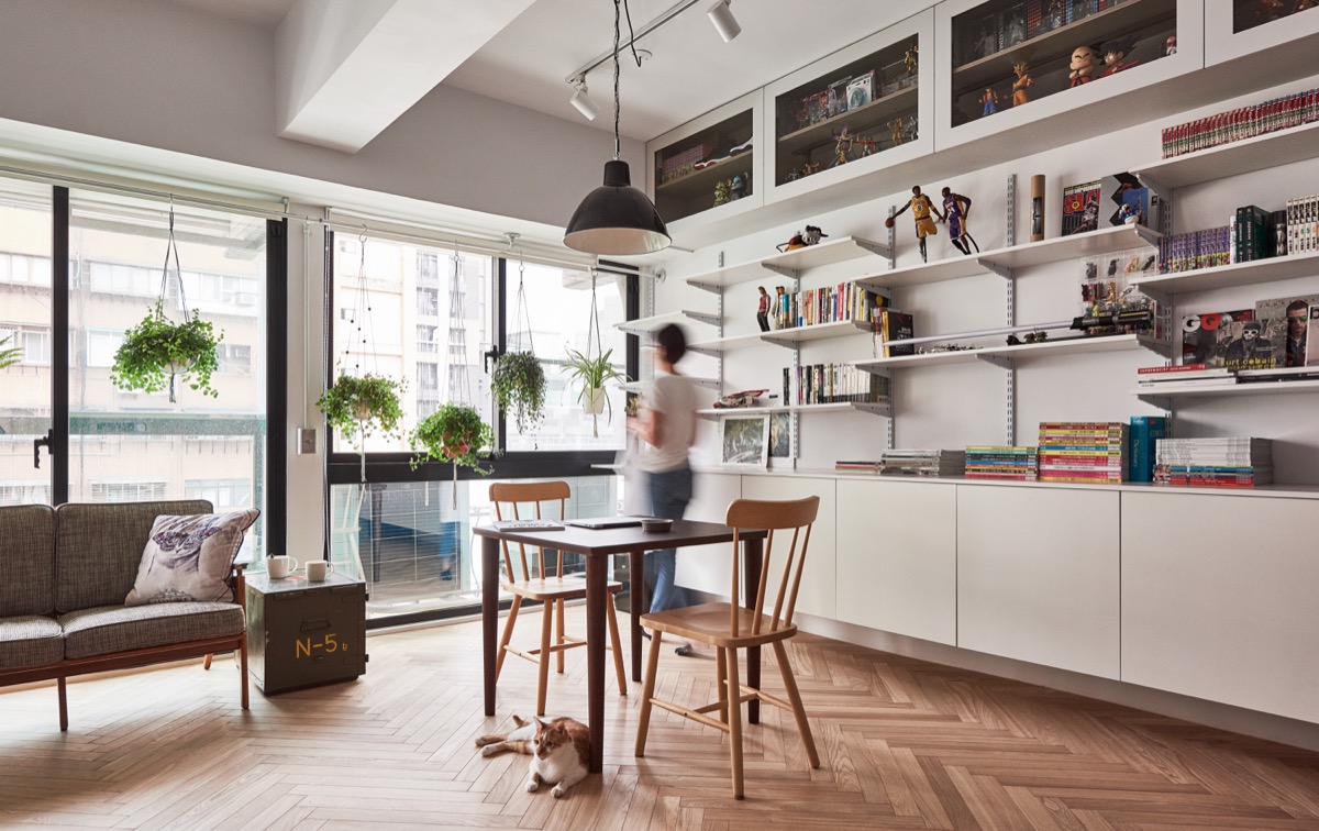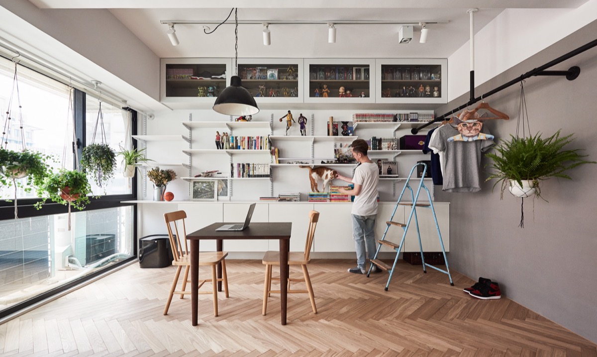 Ето какво е да живееш в малък апартамент с две котки!… Защото няма нищо по-неприятно от липсата на достатъчно пространство. Ние не сме създадени, за да съществуваме в малки пространства, пълни с много вещи и излишни предмети. Проблемът става още по-лош, когато имате котка, която е естествено пакостливо животно. Това е проблемът, пред който се изправя собственикът на този малък апартамент в центъра на Тайпе, където пространството е ограничено.