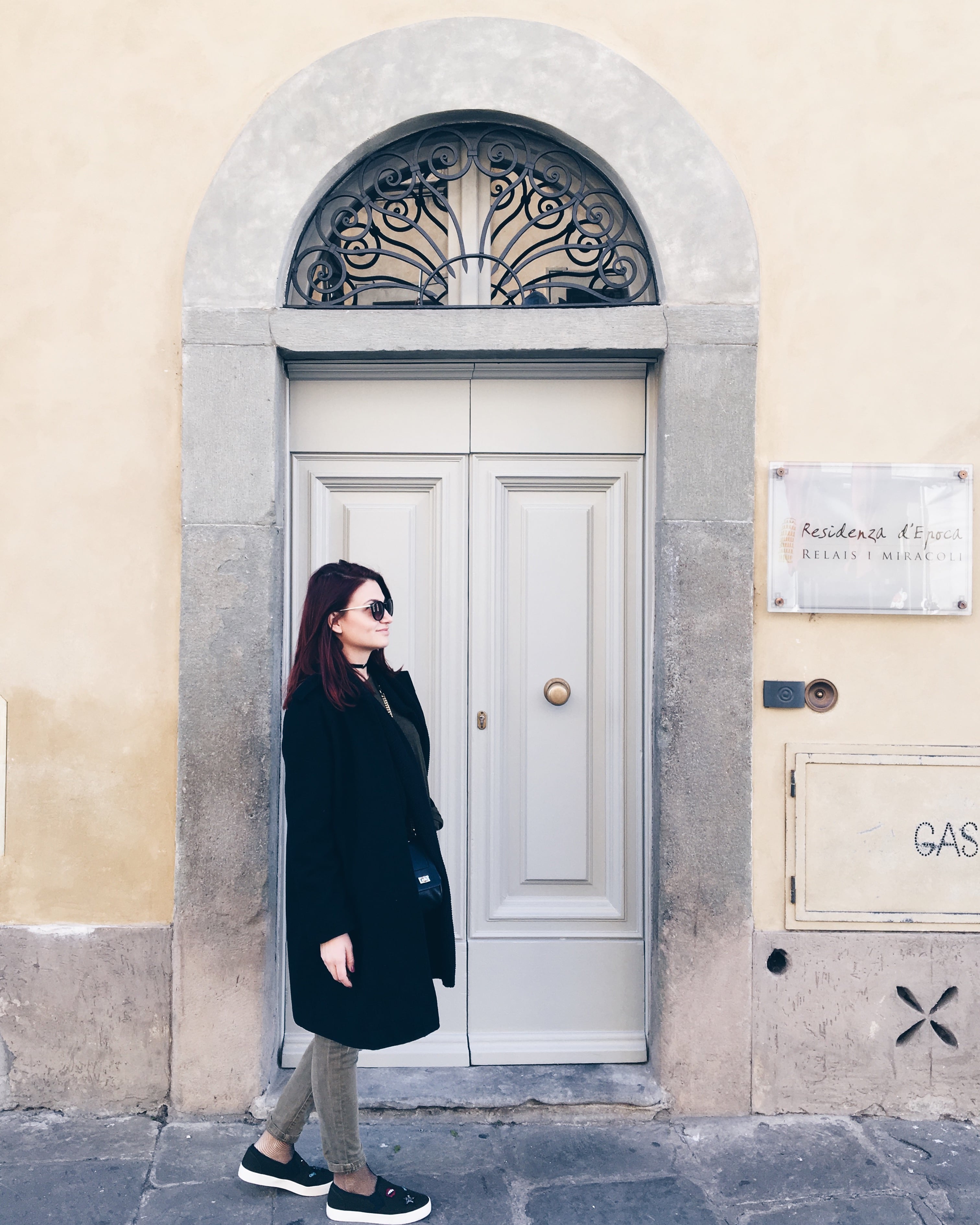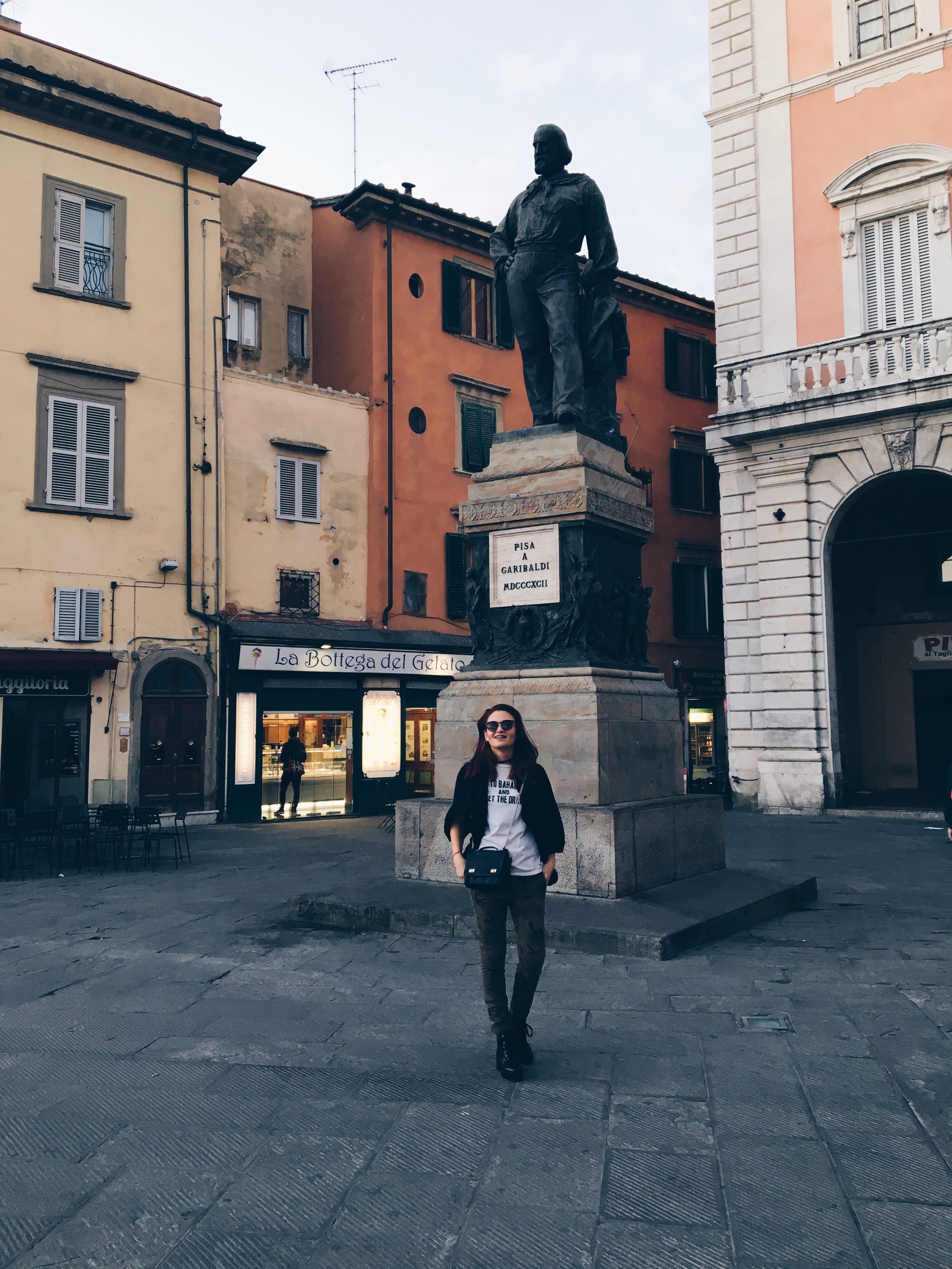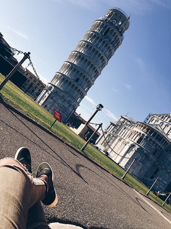 Първата точка е Пиза, подготвена с травел гайд в ръка и предварително планирани местенца за посещение, пътуването се превръща в цяло удоволствие. Самолетът ѝ каца на залез слънце. Посреща слънцето на един от мостовете над река Арно, следва разходка в града и кадър от площадът Гарибалди, а наоколо куп джелатерии, пицарии, пастицерии, тратории, много моторчета, звук от клаксони и гръмогласни италианци.