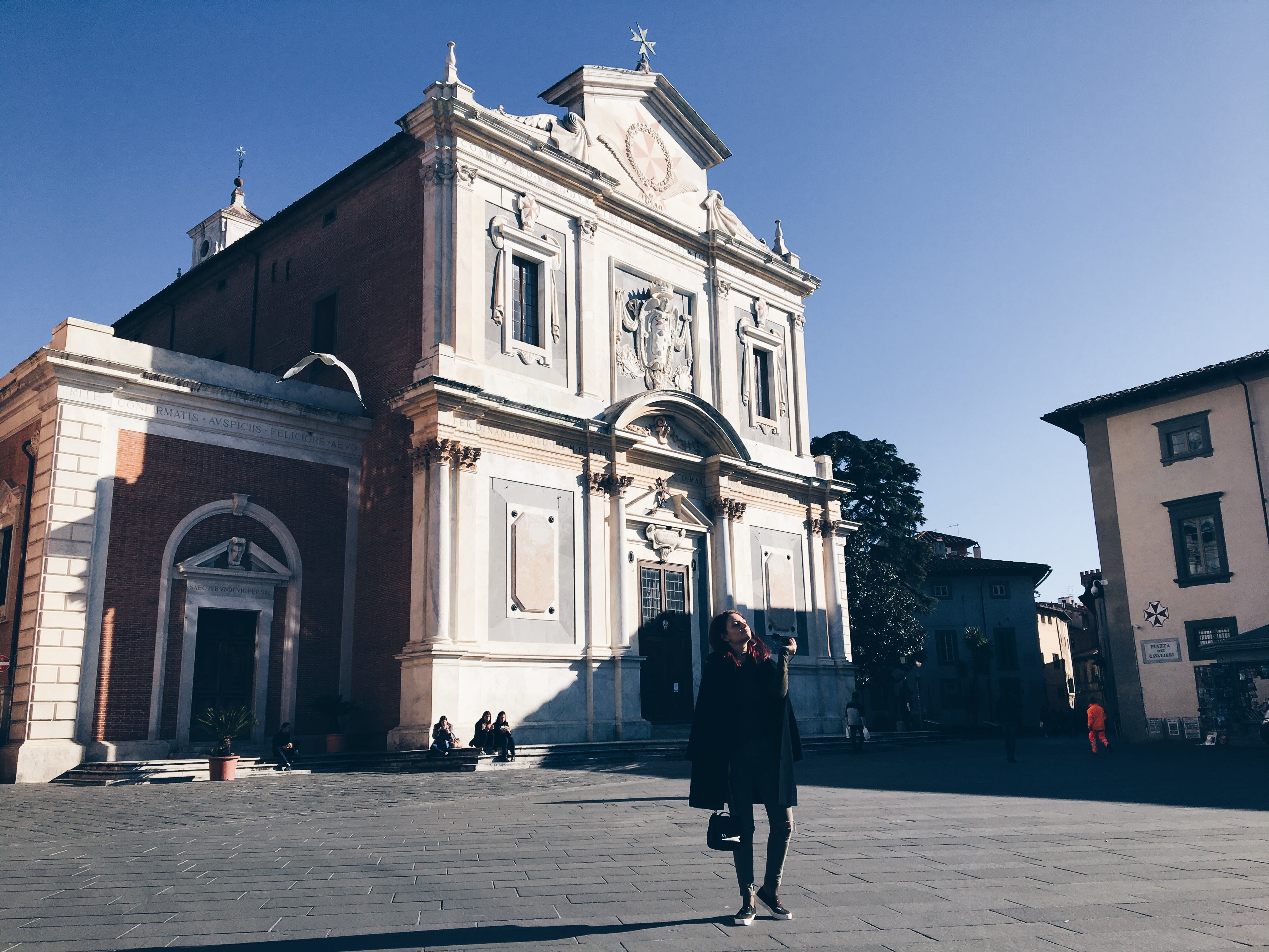 След площадът на дуомото, както го наричат, G E R D Á N A продължава из уличките, среща куп от любимите ѝ врати и деразае към Пиаца дей Кавалиери – Piazza dei Cavalieri. Там се намират Сградата часовник – Pallazzo dell’Oroglio и църквата „Св.Стефано“ – Santo Stefano dei Cavalieri.