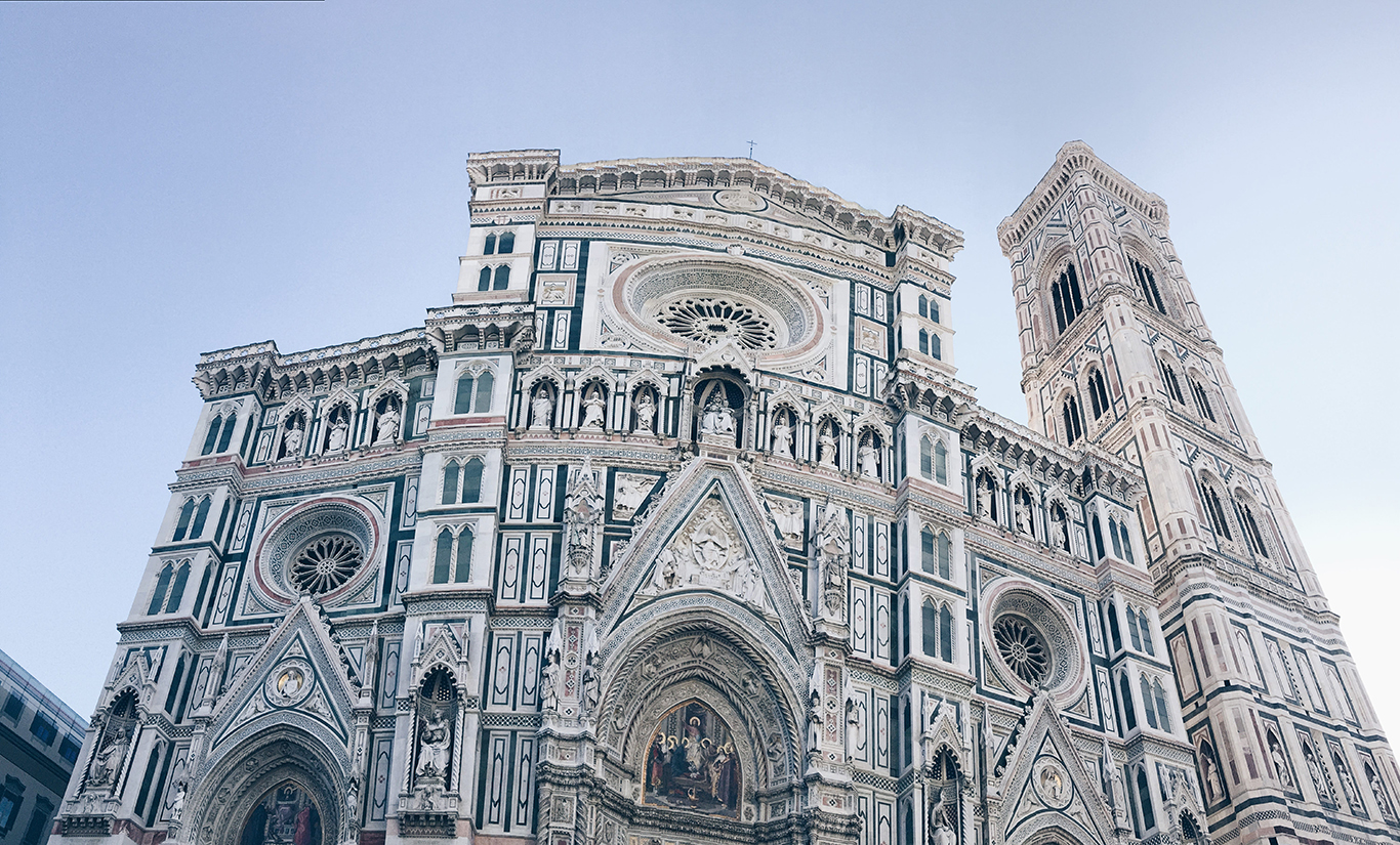 Следваща, най-значима и очаквана от нея точка е Катедралата „Санта Мария дел Фиоре“. Изключително изящество се изправя пред теб, ни споменава, с трепет е очкавала срещата си с тази сграда. Причината – седмица преди да посети Флоренция, куп от най-популярните фешън блогъри се тъплят за снимки пред и в Базиликата. Кадрите са на най-отличителното, купулът на Брунелески, рисуван от Филипо Брунелески. G E R D Á N A споделя, че е имала възможността да го заснеме детайлно от терасата в самата катедрала на път за покрива с гледка към града.