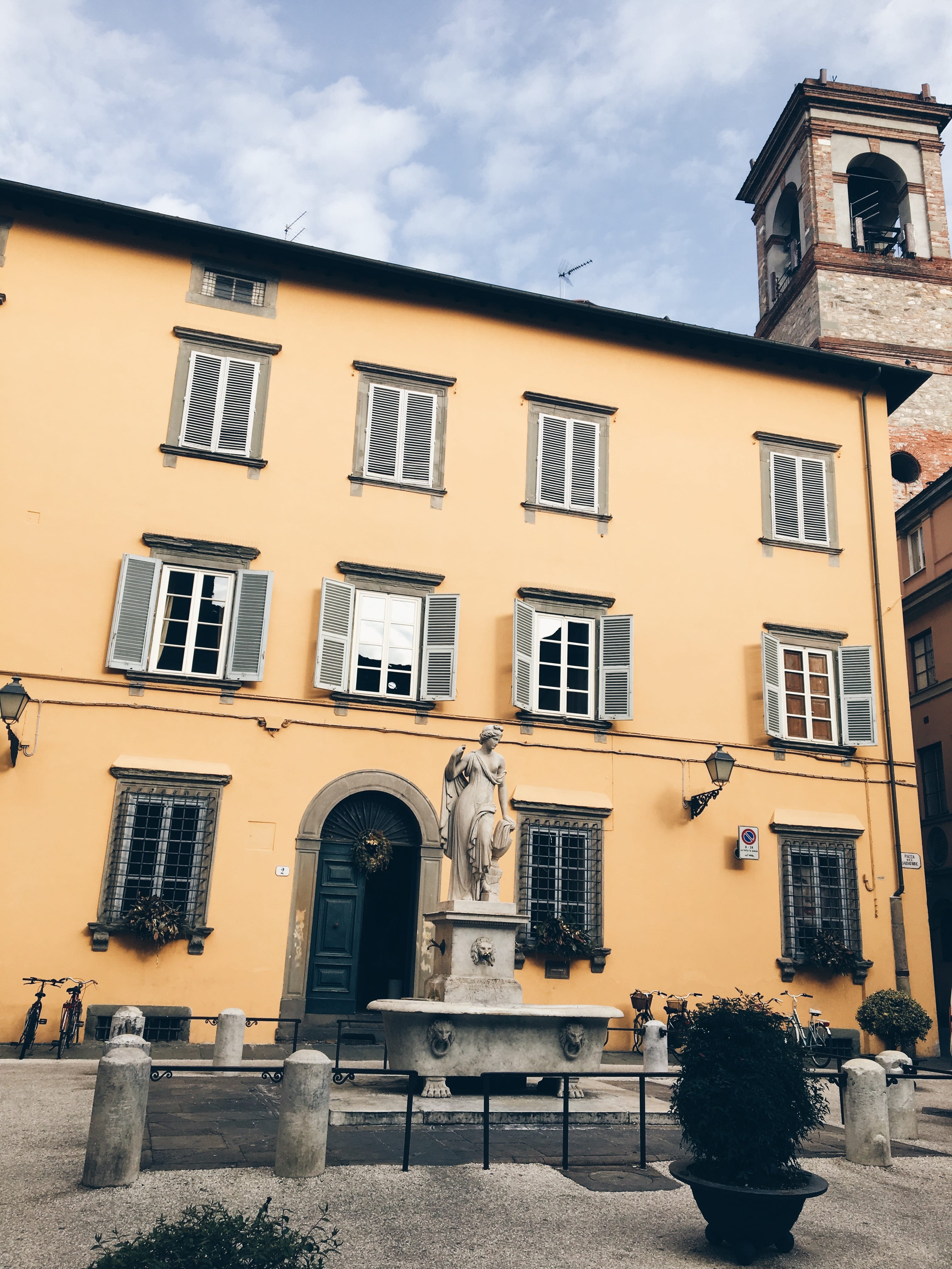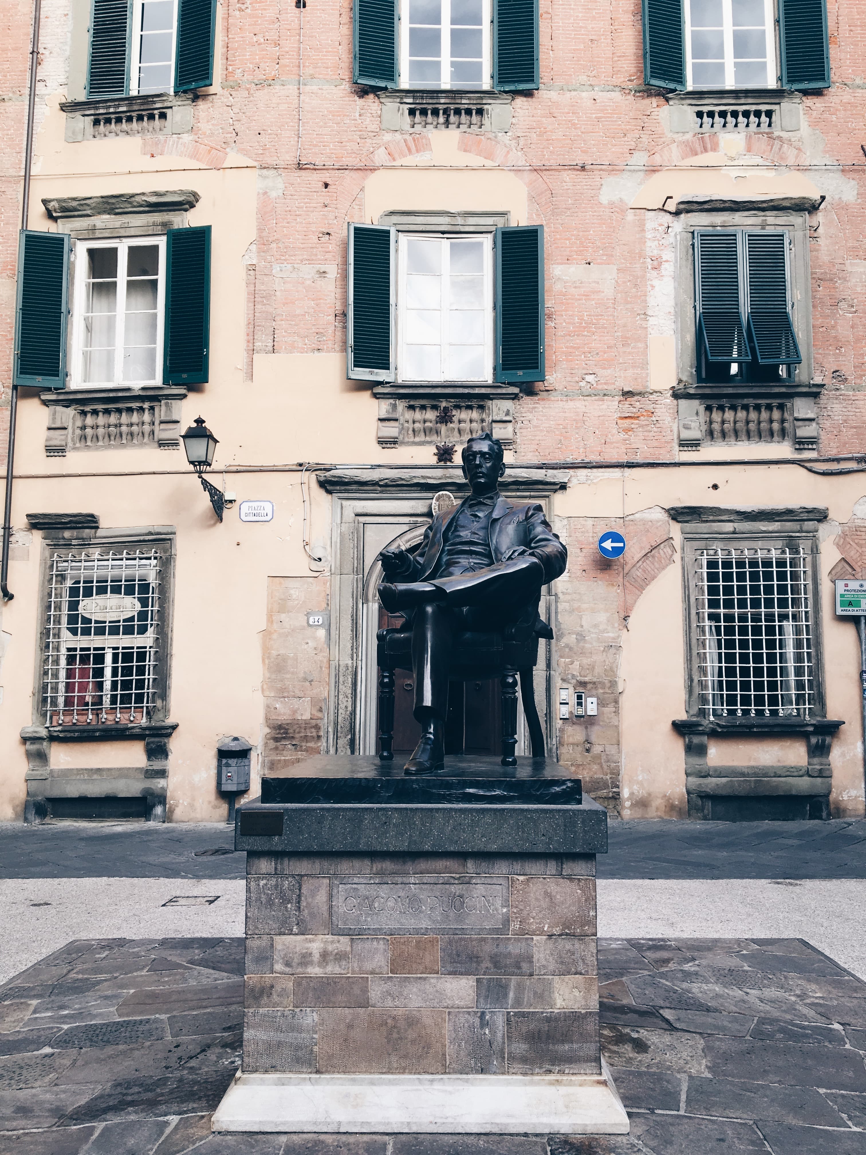 Площадът пред родния дом на Джакомо Пучини и паметникът му.