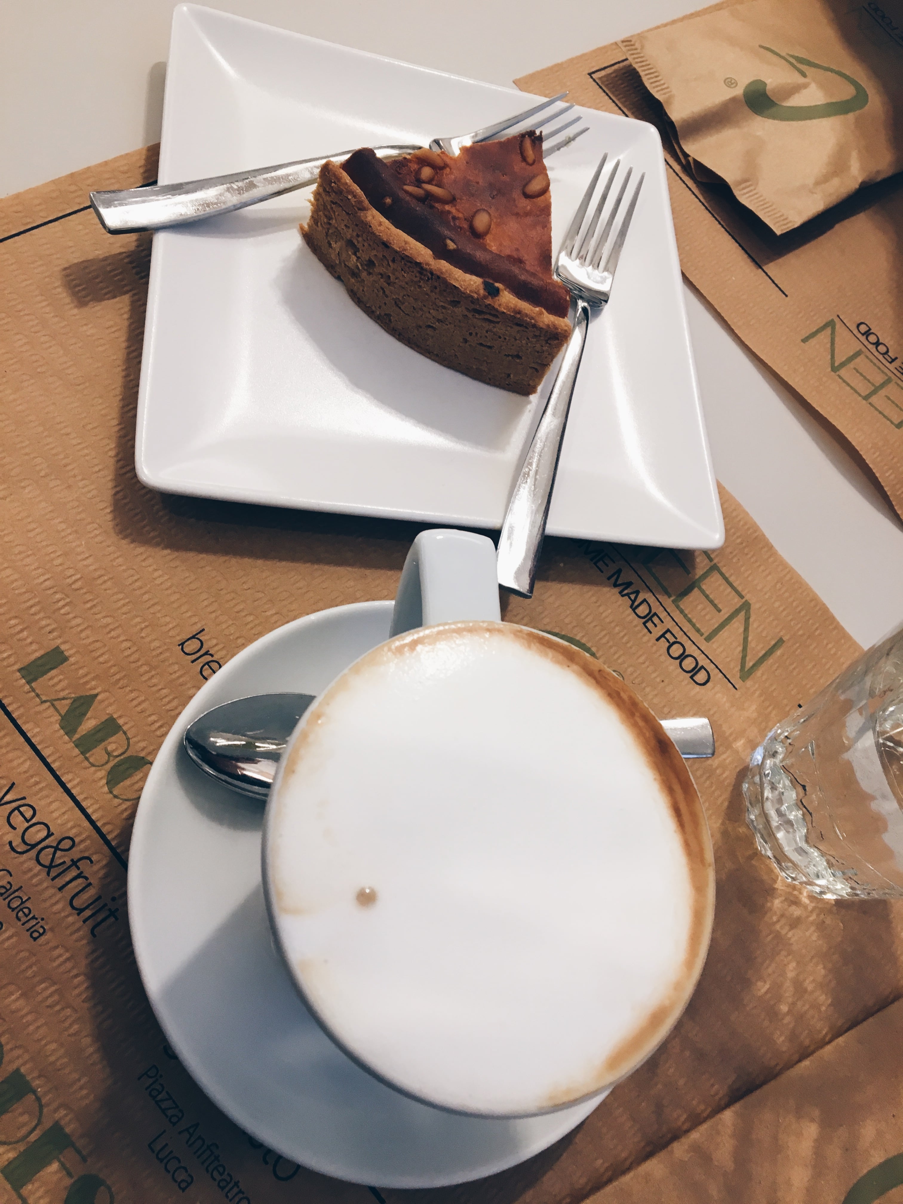 Следобедната кафе спирка на G E R D Á N A е с чаша капучино в ръка и местен десерт със сирене и ванилия.
