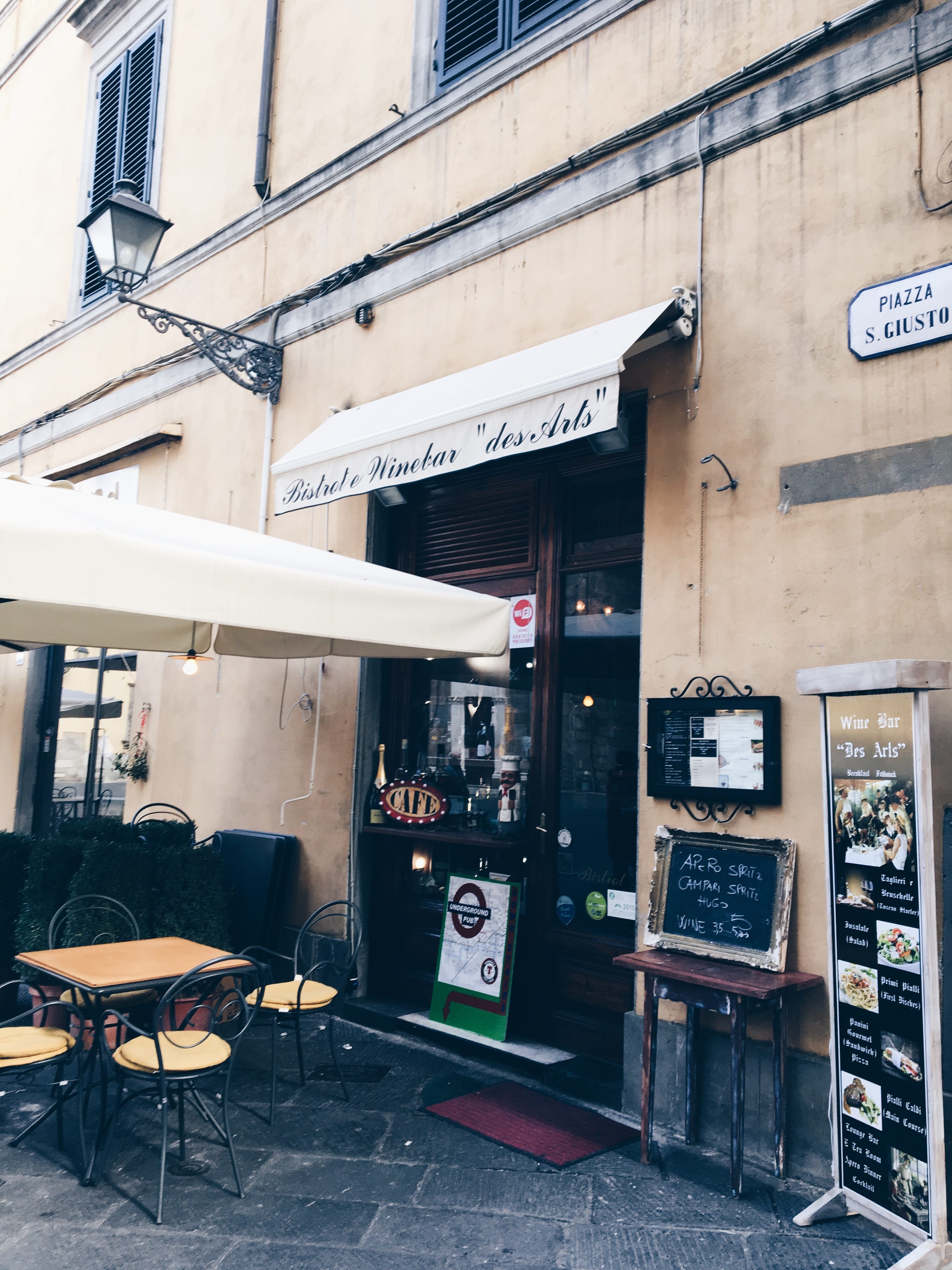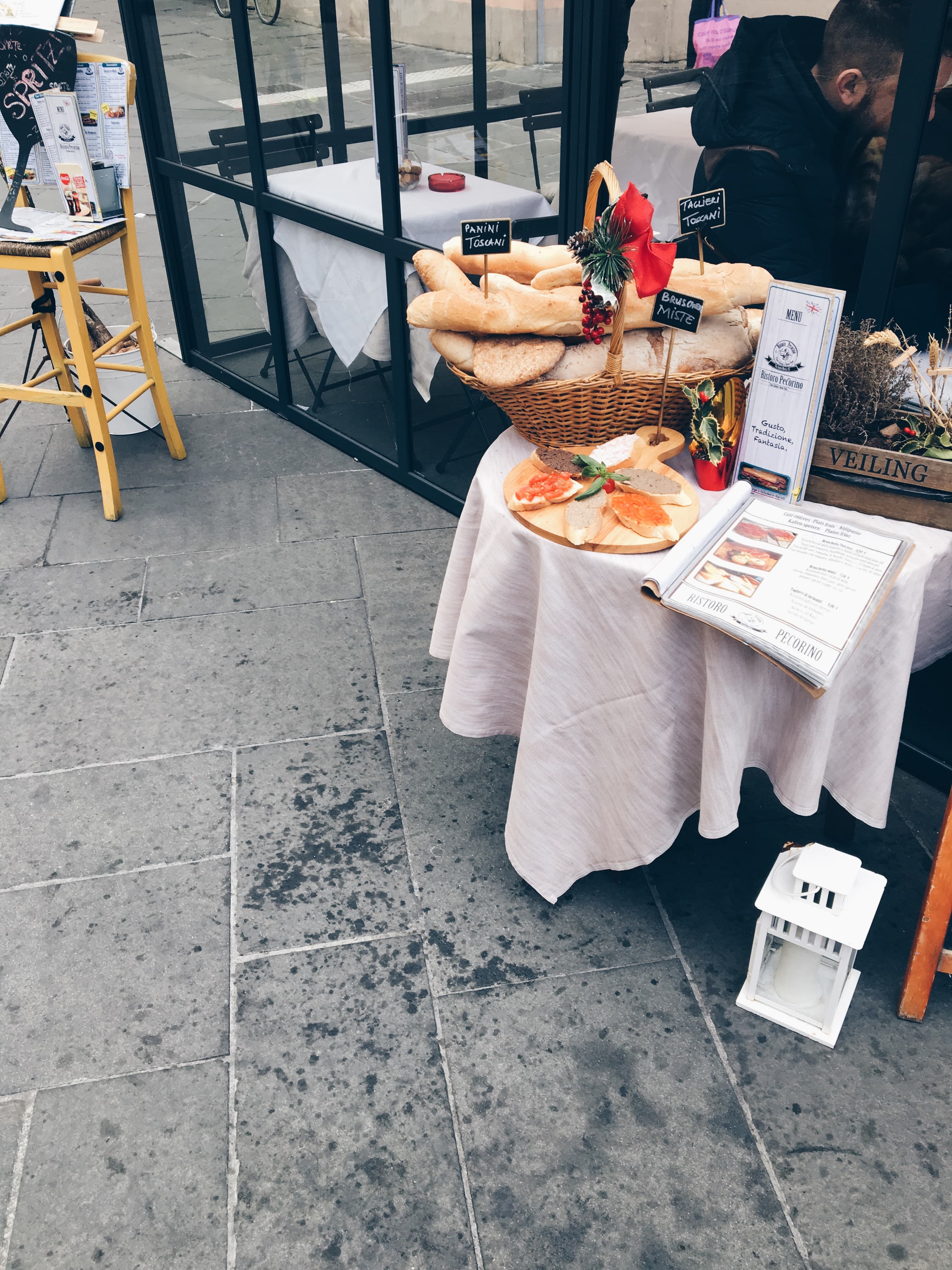 Из уличките тук и в Пиза среща и много магазинчета за картички и различни видове хартии, обожава местни традиции. Заснет от нея момент преди влизането в Галерията Уфици, с творби на Рафаело, Леонардо да Винчи, Микеланджело и др.