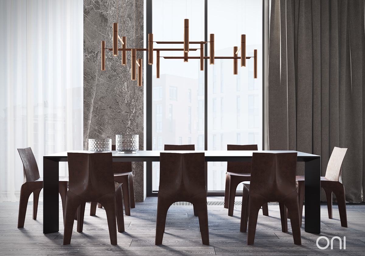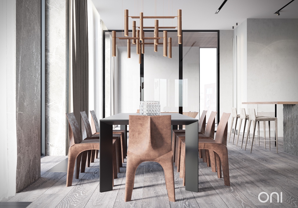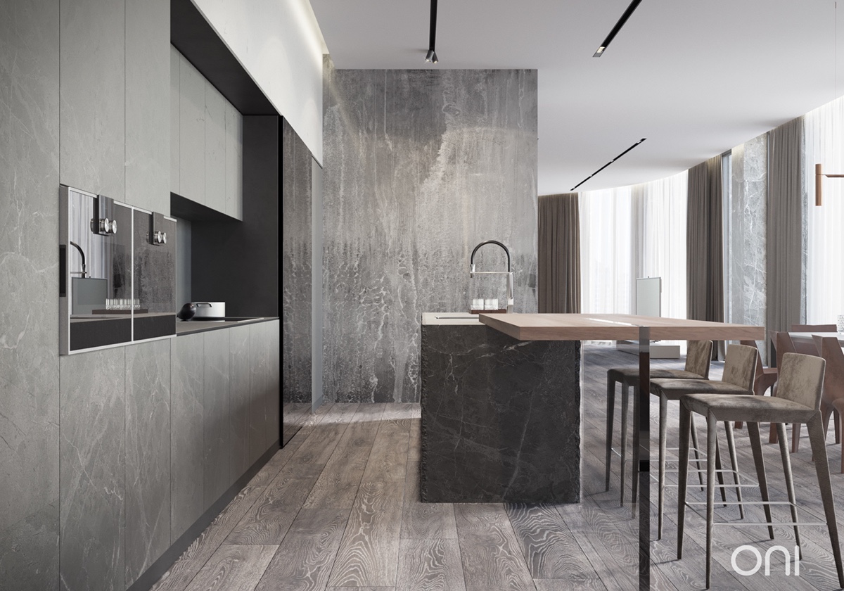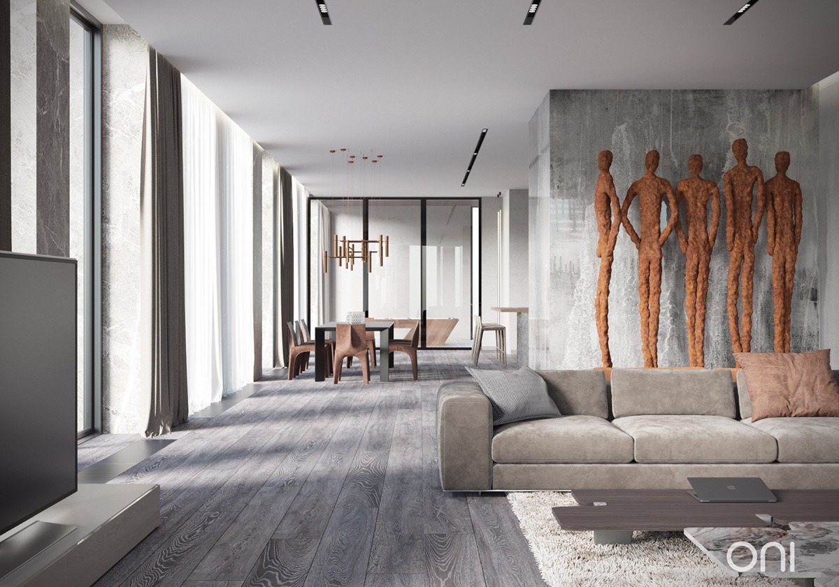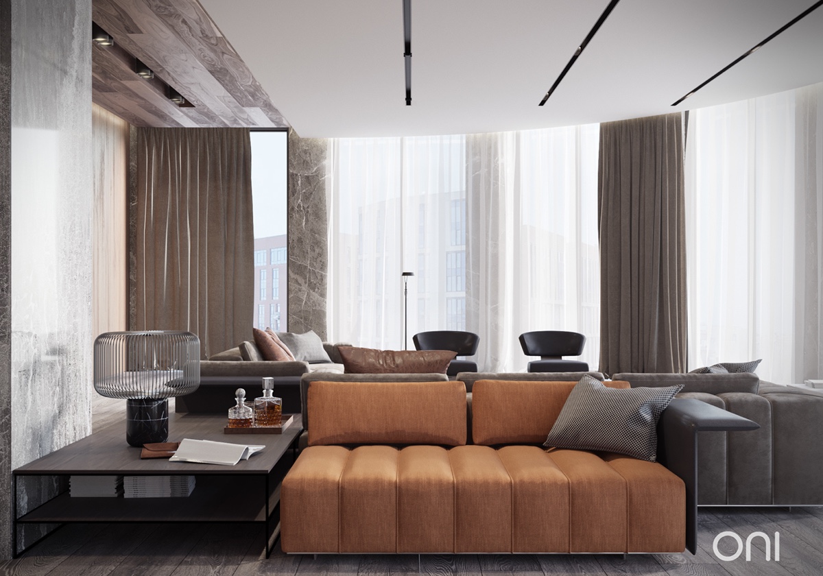 Вторият апартамент е с площ от 180 кв.м. и се намира в Москва. Тук също виждаме интериор решен в дърво, но усещането е много по-модерно и семпло, което е видимо най-вече в детайлите. Въпреки строгото усещане, тук лъха и на комфорт, за което допринасят дългите удобни дивани. Този кабинет, например е доста по-различен от клишето. Снабден е със специален кът за четене, който изглежда примамливо приветлив. Спалнята е голяма, а минималистичният интериор я прави изключително Дзен.