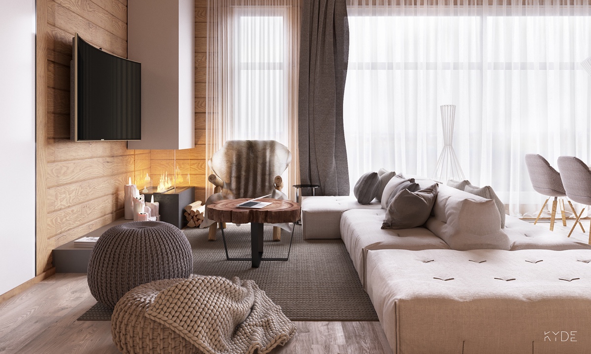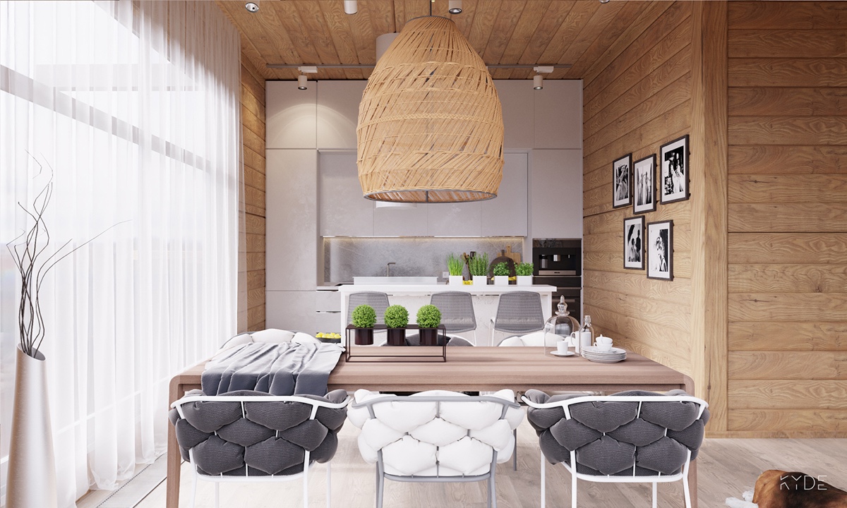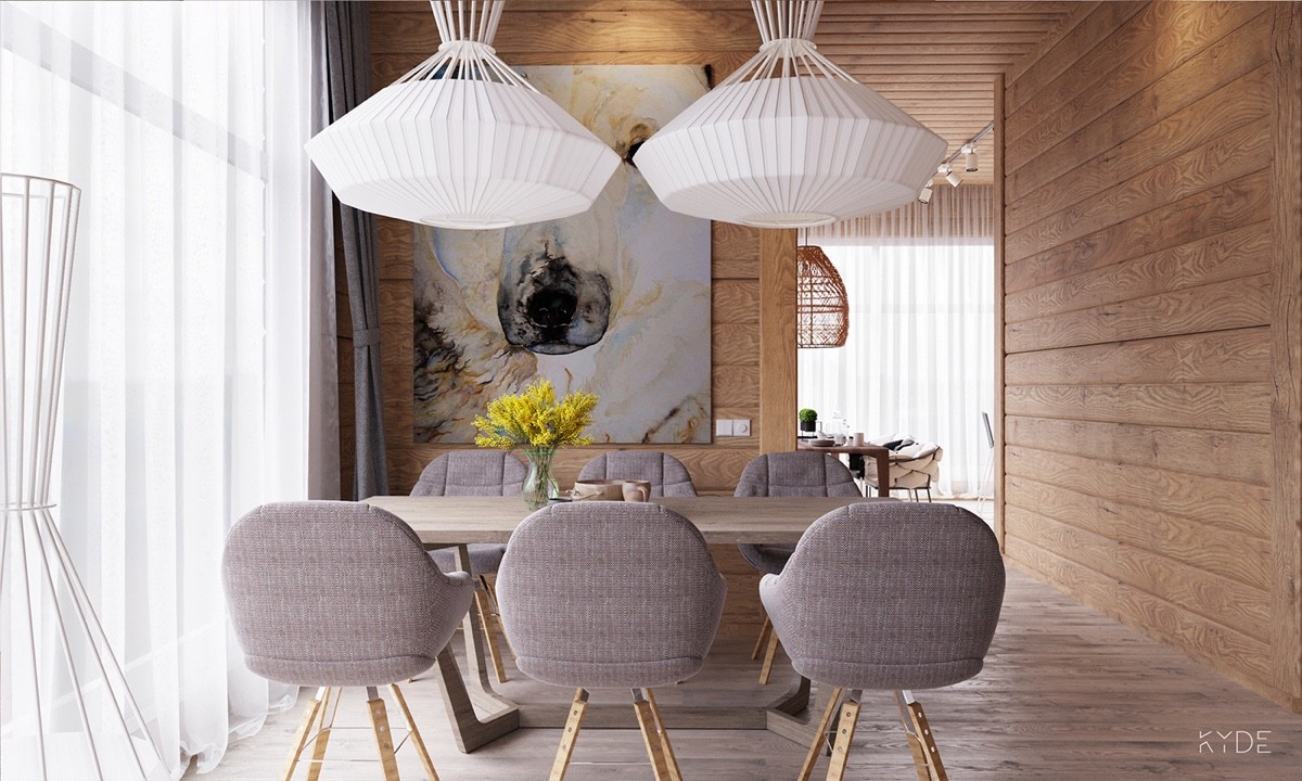 На прицел днес са тези два апартамента с изобилие от дърво в интериора! В ерата на индустриалния дизайн и бетона е лесно да забравим колко красив интериор можем да създадем с висококачествено дърво. Когато естествените шарки и цветове на дървото блеснат в дома ви, дизайнерските вариации са практически неограничени. В тази статия ви предлагаме два интериорни дизайна и доказваме, че не всеки дом, обзаведен в дърво, трябва да прилича на ловджийска хижа или мъжка бърлога в гората. Тези домове са изключително модерни, светли и топли, а елегантният дървен елемент добавя нещо специално като усещане и в двата интериора. Първото жилище се намира в Санкт Петербург и е с площ 100 кв.м Дизайнът се отличава с начина, по който се използва дървото. То не е деликатно отразено с няколко дървени подпори на тавана, а е самостоятелна интериорна част. От облицованите в дърво стени до дървените мебели, дизайнът набляга на дървото, без да му позволи да мине в ролята на неутрален фон, както често се получава. Облицовката на стените е всъщност доста интригуваща за наблюдателя, защото вертикалните летви, рисуват красиви линии и шарки. Друг акцент в стаята е красивата масичка за кафе направена от парче червено дърво. Трапезарията е с много лек дизайн и е отворена към остатъка от дома, заради липсата на преградна стена. Цветовете в интериора на целия апартамент са меки, кремави и неутрални. Повечето цветни комбинации са бяло, сиво, кремаво. Банята е най-модерното помещение тук. Тя разполага с прекрасни шестоъгълни плочки в топло сиво и модерно оборудване.