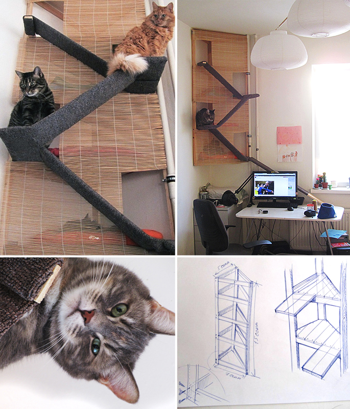 Индустриалният дизайнер Илшат Гарипов, взе своята собственоръчно направена кула за котки и я представи на публиката в Редит. Това беше моментът, в който котешката кула еволюира в нещо повече. От живеещи в скромни котешки кули направени от дървени остатъчни късове, котките започнаха да живеят в луксозно моделирани комплекси с кули и възглавници от овча кожа.