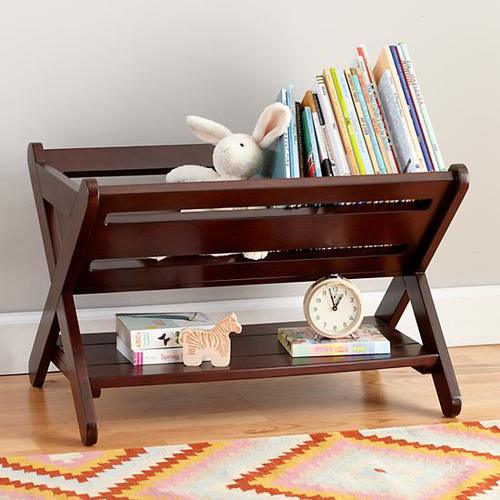 Хвърлете поглед на този спретнат органайзер за детски книги. Направен е от дърво. Доста е семпъл и не изисква особени усилия, за да го изработите сами. Също така, можете да пригодите някаква платнена торба, в която малчуганите да събират играчките си и всякакви други дреболии, след като приключи времето за игра.