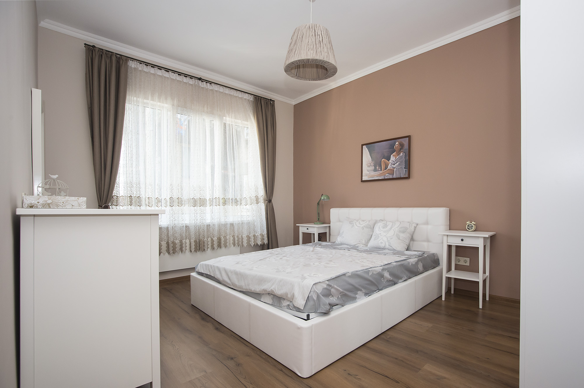 Спалнята на родителите се обособява като стилно място за релаксация.