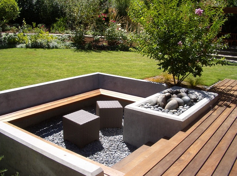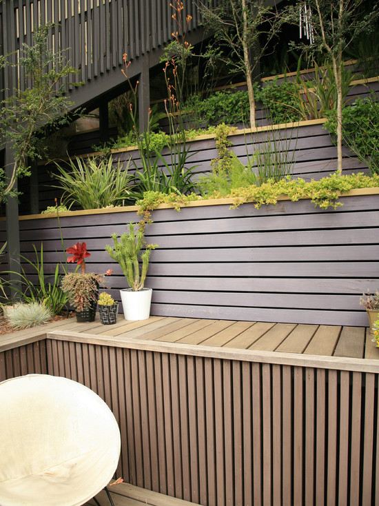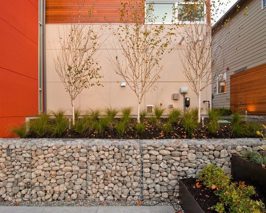По-ниското ниво е с вътрешен двор, на следващото разположете камина и места за сядане, а по-високата част може да оставите за зеленчукова леха. А зеленината и цветята съпътстват цялото пространство. Самата стена създава чувство за сигурност и уют, затова съвсем естествено е да изградите около нея кът, скрит от хорските очи, където необезпокоявани да релаксирате. И другата възможност, с която спестявате и пространство, е директно върху стената да разположите етажирано цветя и зеленина.