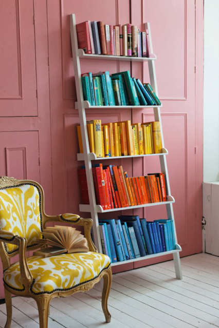 Подредете книгите по цветове, като започнете с най-светлият в горната част и продължите надолу до завършване на ефекта. Тази идея може да се приложи и ще изглежда страхотно за всички стилове библиотеки.