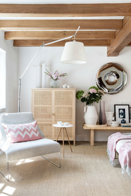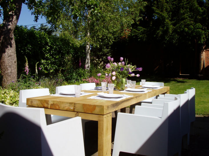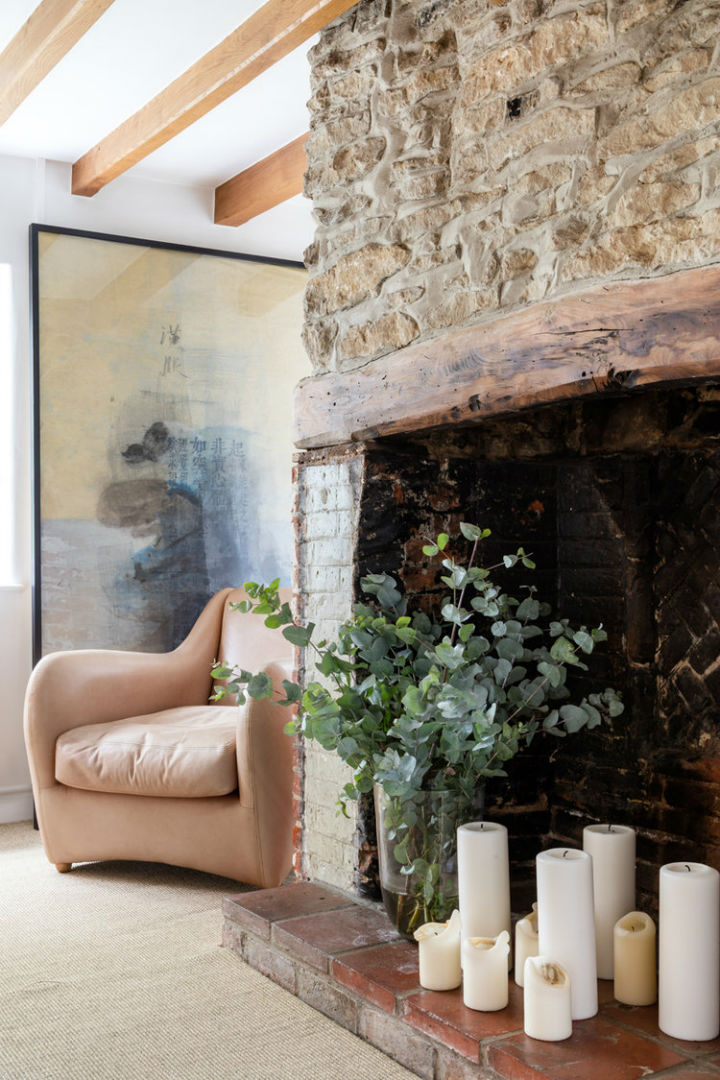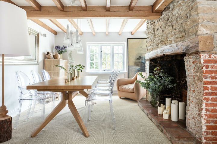 Първото, което ще забележите е изобилието от бял цвят – бели покривки, бяло спално бельо, бели стени и подове. Дори някои мебели и аксесоари са в бяло – като вази и полилей. Белият цвят прави чудеса с това място, изтънчен и чист дизайн. Откритото дърво, мебелите в неутрален цвят и стайните растения придават характер на стаите. Оставайки верни на суровия стил на оригиналната постройка, тя разполага с много натурални тухлени стени над камината в трапезарията, в кухнята и коридорите. Те осигуряват плавен преход в дизайна от класически към модерен стил. В тази къща има такова изобилие от саксийни цветя, че спокойно можете да се объркате дали сте в градината или на закрито. Има цветя в банята и саксии с билки в кухнята, със сигурност можете да усетите естетиката в тези цветни попълнения. В градината има на разположение голяма маса за гости, където можете да се храните на открито с приятели. Таванът е особено забележителна част от интериора със своите оголени дървени греди, които минават по протежението на стаите. Те са в абсолютен синхрон с меките спокойни тонове на мебелите и подовата настилка.