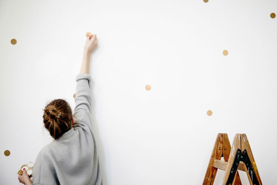 Няма такова нещо като безпроблемно и чисто боядисване. Боядисването винаги е свързано с бъркотия, изпарения и много загубено време. Тези идеи ще ви помогнат да преобразите стените си без да използвате и милилитър боя. Всеки от тези методи ще прикрие успешно и стилно всякакви недостатъци по повърхността на стената като дупки, вдлъбнатини или драскотини. Можете да прикриete неприятни петна по стената на апартамент под наем със самозалепващо се фолио – а именно весели точки.