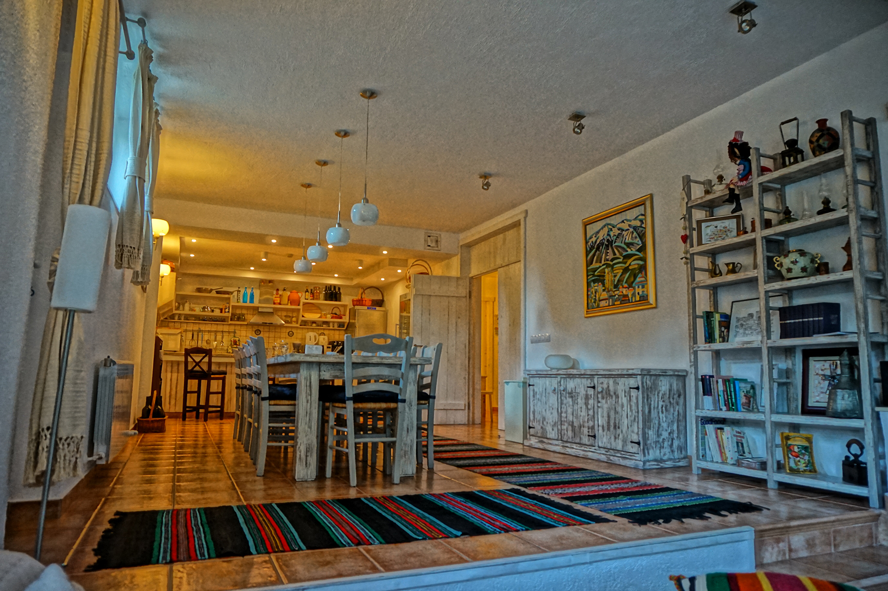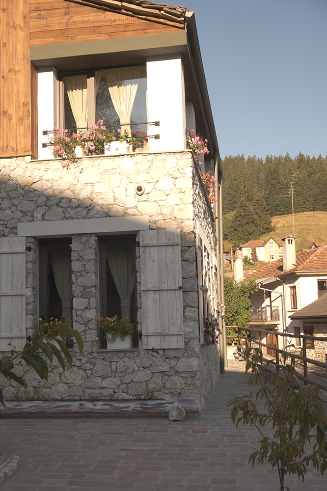 За интериора – от една страна стремежът е бил отново да се ползват само естествени материали, дърво, а от друга желанието е било да се акцентира върху нещо много характерно за Родопите и нещо, което за съжаление не винаги се разбира и не винаги се интерпретира правилно и задълбочено, а именно дългото и мирно съществуване на различните етноси по тези земи – българи, помаци, юруци, турци, гърци, евреи… Но и преселенията и пътуванията на местните овчари през зимите към Беломорието и на приижданията на зидарите летата към планините… Този богат обмен на култури, навици, традиции, езици, бит са търсили домакините до някъде да пресъздадат и в интериора… Затова докарали подови настилки и бани от сефарадските евреи… (Малко хора знаят, че град Солун и околностите са създадени и развити от същите тези сефаради, прокудени през 15 век от испанския кралски двор и от Инквизицията.)