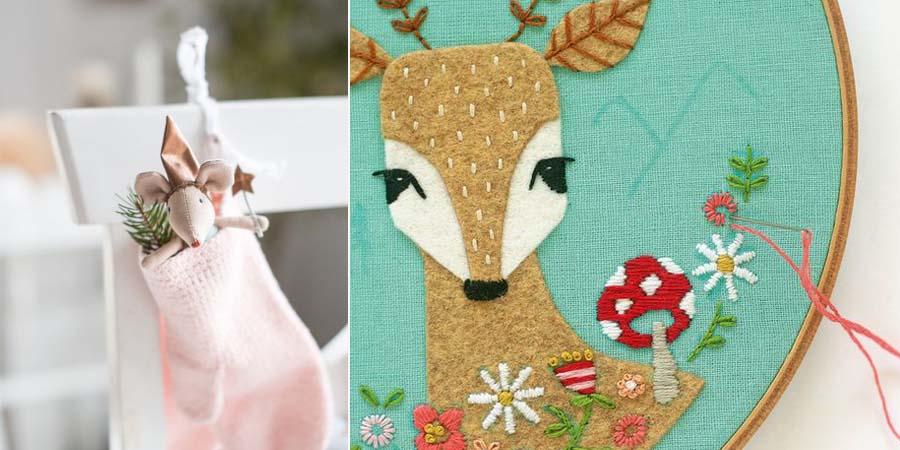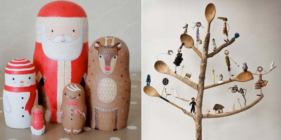 Изберете текстилни играчки за украса и ги вплетете в комбинация с бродерии, вдъхновени от приказни герой. Имайте предвид, че емблематичните и стилизирано изработени персонажи, ще направят коледната украса наистина оригинална и специална. Основните цветове са: цвят къпина, лавандула, сребърно, тревисто зелено, мед, пъпеш и марципан. Тази Коледа всичко е някак насочено към нещата, изработени от нас, цветове от природата и естествени материали. Това е дейност, в която можем да включим всички у дома и да прекараме забавно времето заедно. Всичко с бродерия или плетено на ръка е добре дошло за тазгодишната декорация, също така тъкани като лен, памук, вълна, дърво. Десени като традиционното каре, дори кошници с “омбре” ефект, които можете да напълните с лакомства или подаръци.
