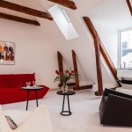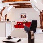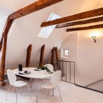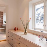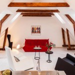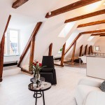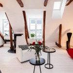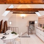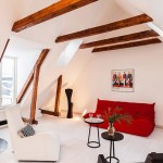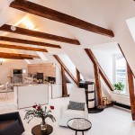Този красив скандинавски дуплкес е с обща площ от 122 кв и има три стаи. На първия етаж има голям коридор, които води до спалнята както и голямо място за съхранение на дрехи и обувки. Има само една баня в цялото жилище и тя е на първия етаж. Класически стълби водят към страхотния втори етаж където дървените греди създават уютна атмосфера. Тук има всекидневна с отворен и трапезария – свеж и светъл интериор изпълнен с натурална светлина. Както в повечето скандинавски домове стените са боядисан в бяло като по този начин се създава силен контраст с дървените греди и червения диван.