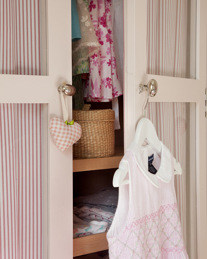 Стаята е желанието на всяко малко момиче. Тя е като сбъдната мечта. На разположение е гардероб за съхранение на дрехите, кът за учене, а това кресло се превръща в легло. Въпреки че е в розова тематика, стаята е изключително модерна, комбинирайки пастелен нюанс на розово с червено и циклама – дръзко и нестандарно интериорно решение. На разположение са всякакви удобства, за които едно осемгодишно момиче може да пожелае. Ключовите елементи в тази детска стая са: