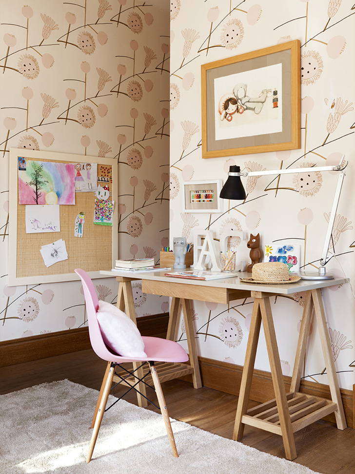 Всичко това, съчетано по уникален начин превръщат тази детска спалня в романтичнично и нежно пространство за живеене, учене, игра.