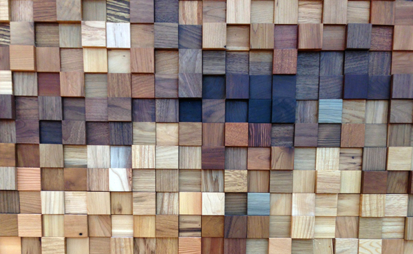 Тук не само са комбинирани дървени блокчета в различни цветове, но и са сложени така, че да образуват релеф.