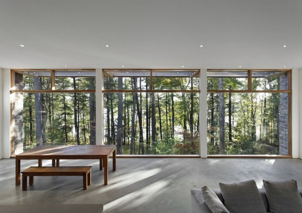 Къщата е изградена между две скални била на юг и запад. Заобиколена е от високи дървета, но същевременно предлага гледка към гората и залива Джорджия. Направена от камък, дърво, бетон, къщата изглежда като естествено продължение на природната местност. Южната страна е почти изцяло в големи прозорци, с невероятна гледка.