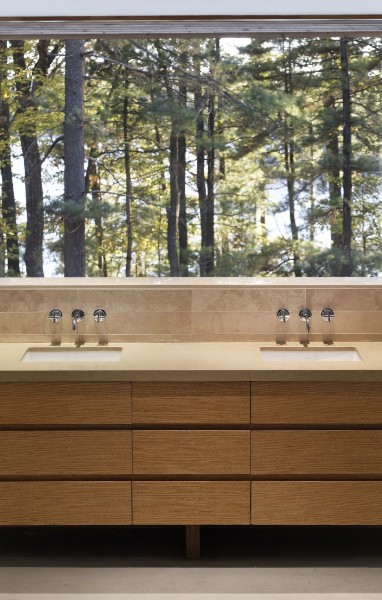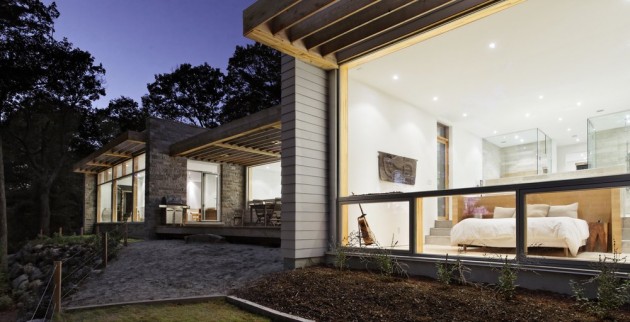 Къщата е изградена между две скални била на юг и запад. Заобиколена е от високи дървета, но същевременно предлага гледка към гората и залива Джорджия. Направена от камък, дърво, бетон, къщата изглежда като естествено продължение на природната местност. Южната страна е почти изцяло в големи прозорци, с невероятна гледка.
