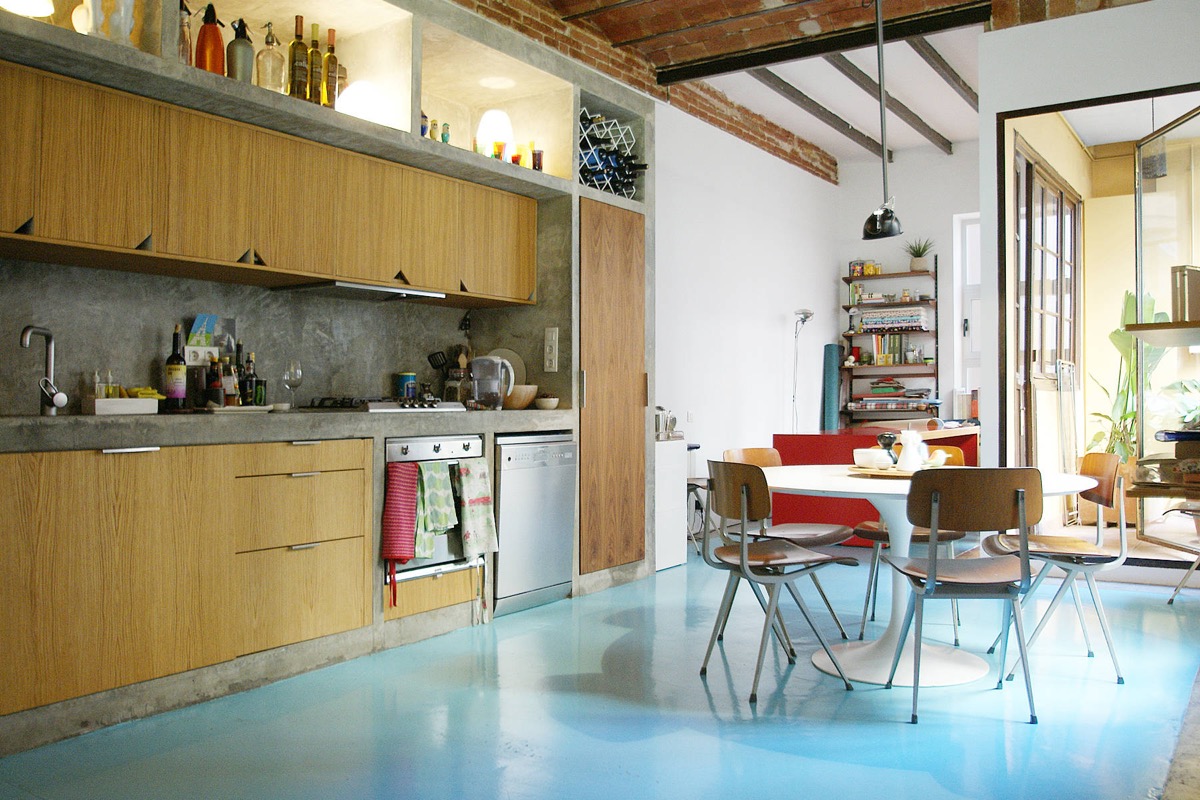 Как наличието на груб бетон в комбинация с открити тръби може да се окаже елегантно интериорно решение? Вижте в Галерията.