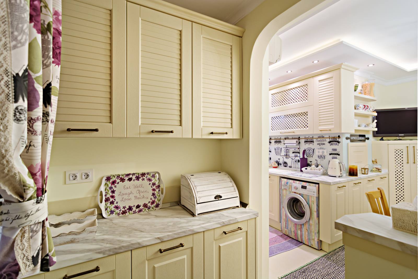 Романтични завеси и закачливи акценти – тази кухня е уютна, удобна и модерна. Кухня с дъх на ванилия и лавандула!…