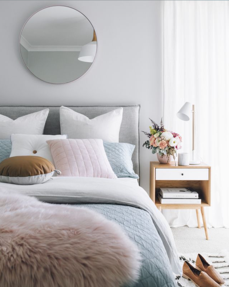 Това са цветове, които асоциираме предимно с детски стаи, но тук им е придаден по-зрял привкус. Когато тези два цвята са комбинирани с естествени и смели текстури, резултатът е изненадващо изискан, а нежният им оттенък е благодат за по-смели материи като козина например, без да провалим естетиката на стаята.