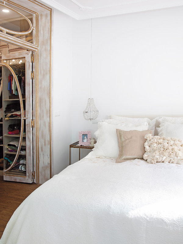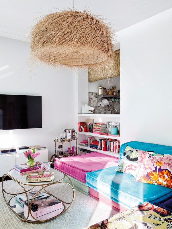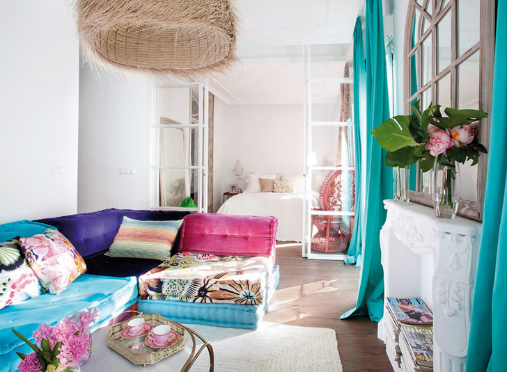 Интериорът на този малък женствен апартамент в Мадрид, разположен на площ от само 67 квадратни метра, е пример за много стил и работа с цвят. Идеята е да се създаде уютен, светъл и много женствен интериор.