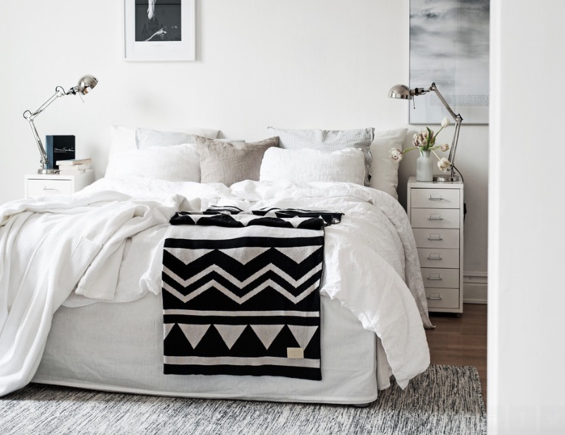 Страхувате се да не е твърде рязък? За да запазите вашата малка спалня от усещането за студ и от липсата на индивидуалност, използвайте цветни текстури. Добавянето на шарени акцнети трансформира стаята от стерилна в стилна.