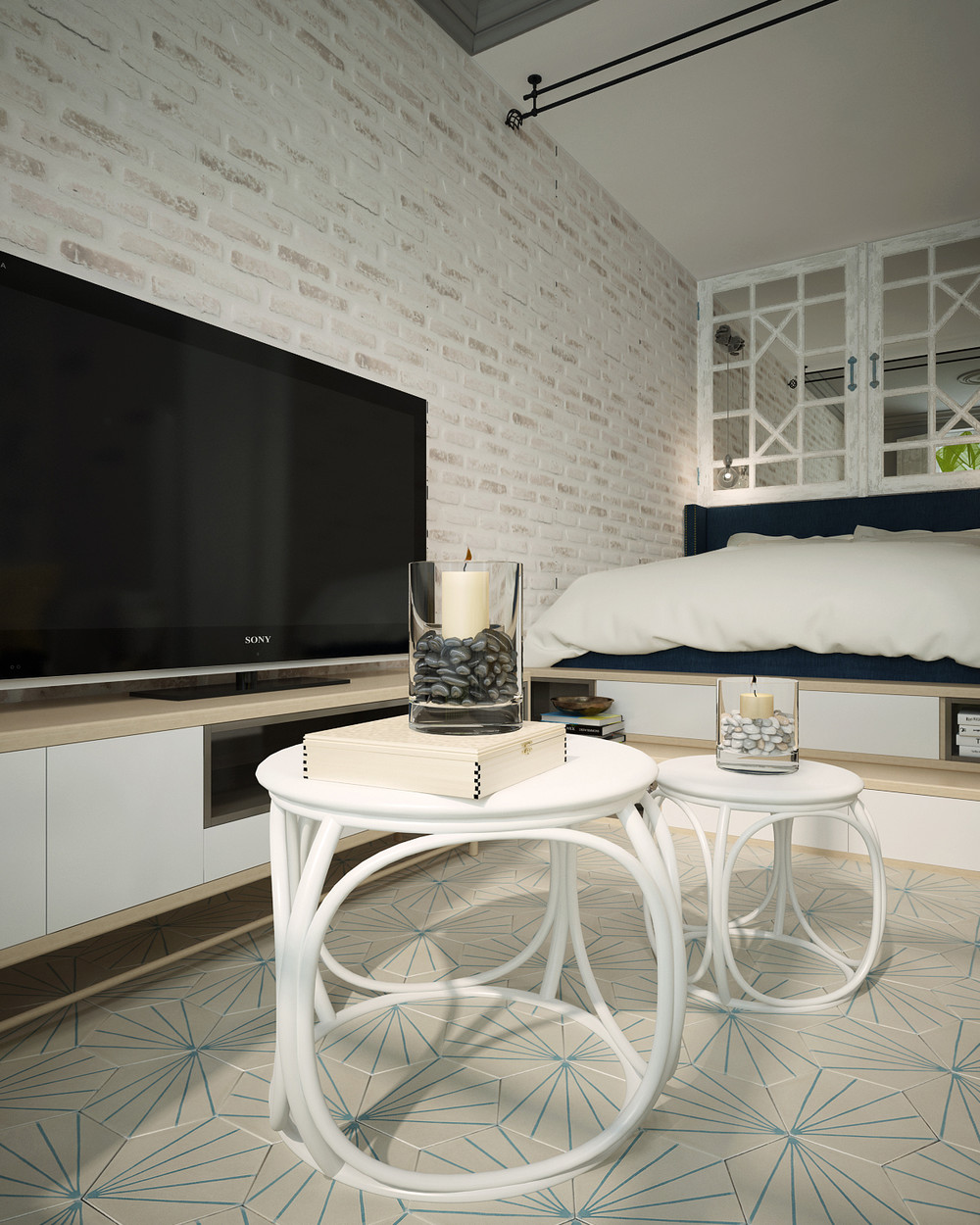малък ярък апартаментмалък ярък апартаментУдобен, но компактен е другият апартамент, който заема скромен отпечатък от само 28 квадратни метра. Отговорник за дизайна е Irina Ovsyannikov. Оформлението е в резултат от обновяването, предназначено да отговори на потребностите за летни развлечения на млада двойка.