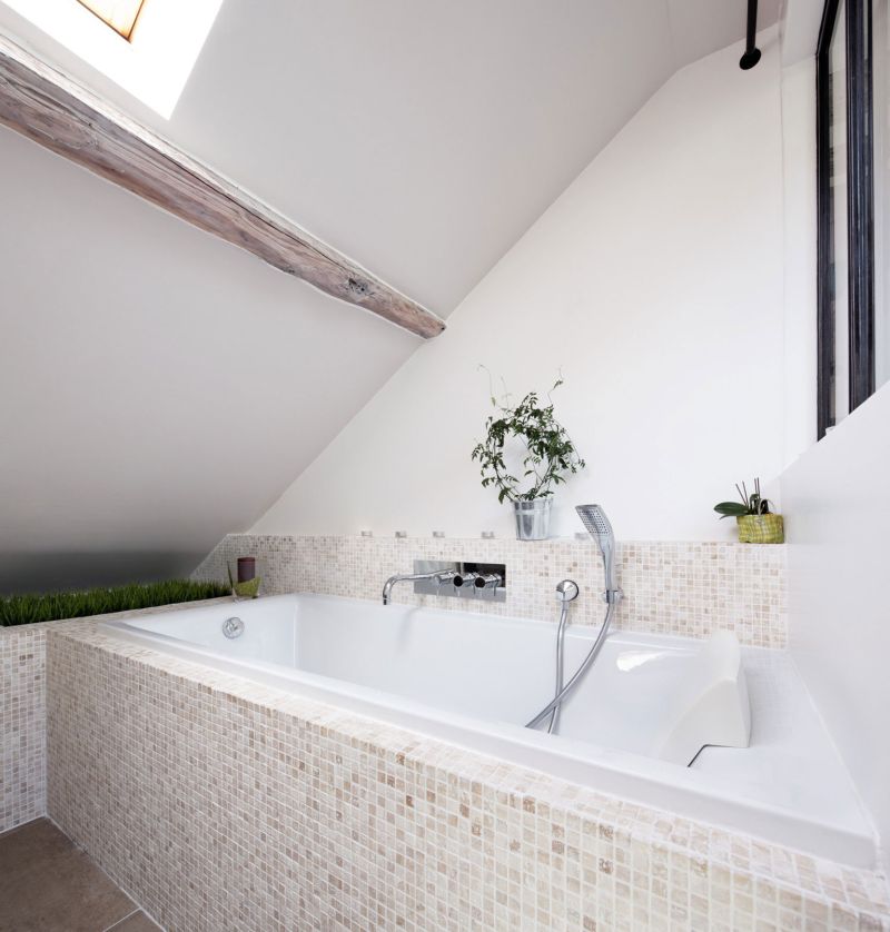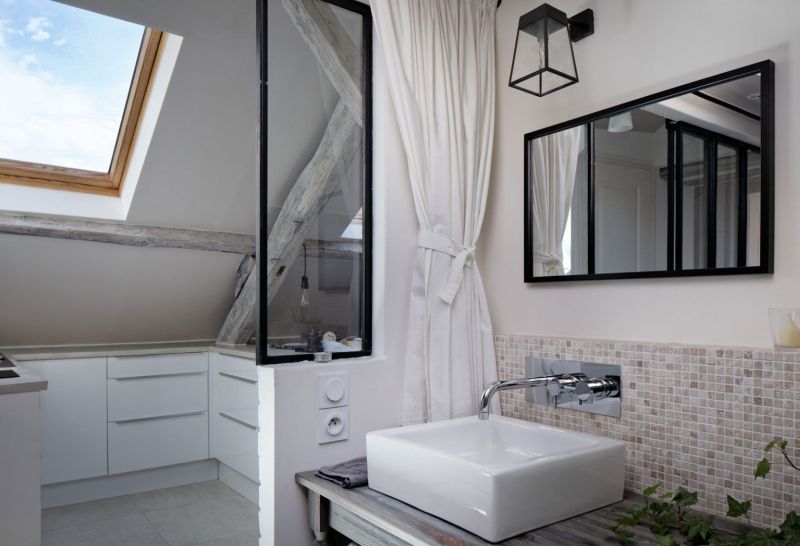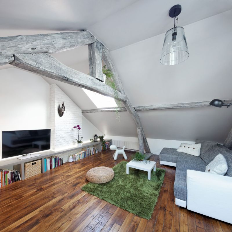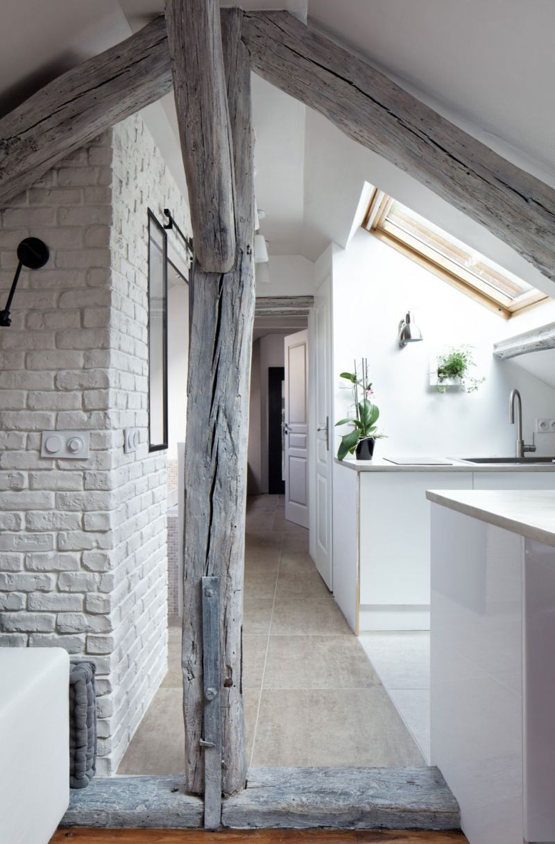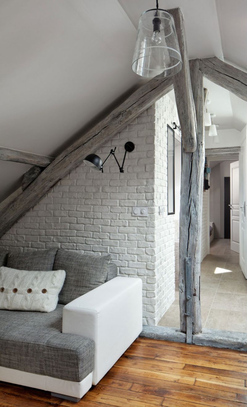 Този апартамент е реновиран през 2013 г., а проектът е наречен „Habiter Sous Les Toits“, което се превежда като „Да живееш под покривите“. Основната цел в този проект е да се отвори пространството, за да се позволи на естествената светлина да влезе вътре и всичко да изглежда просторно и светло, въпреки малките размери.