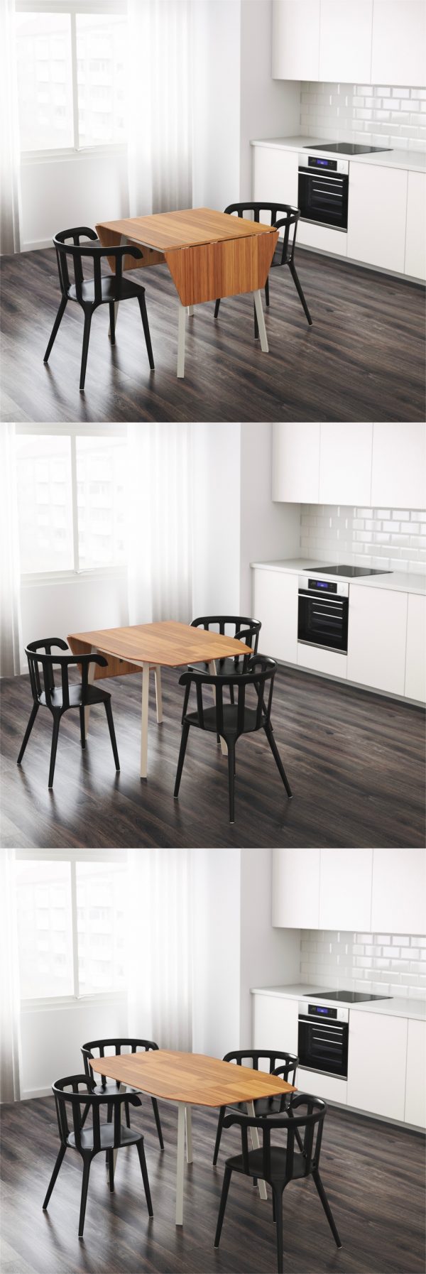 Не разполагате с достатъчно място за гостите си? Не се безпокойте, тази “умна” масичка с компактно прибиращи се табуретки е не само дискретна, но и разполага с допълнително място за складиране на вещи. Повдигнете седалките на табуретките и ще разкриете тайната им!